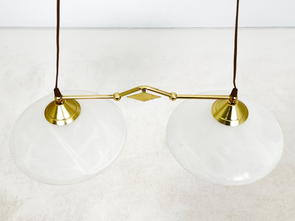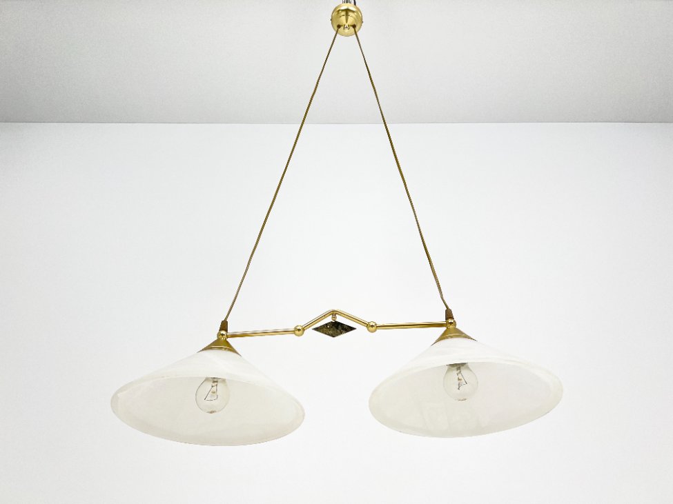 Metalinis Fischer Leuchten dviejų šakų sietynas su stiklo gaubtais.