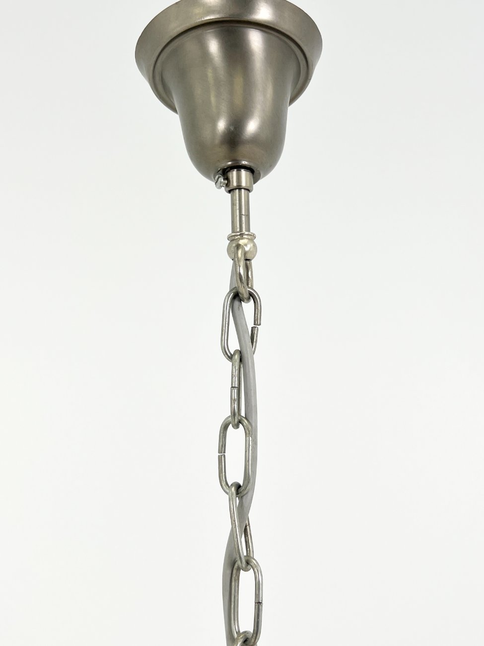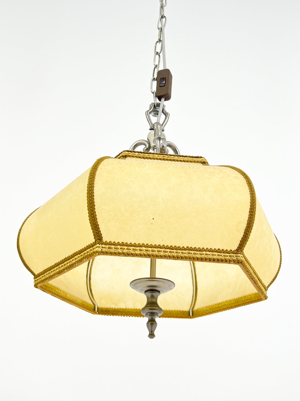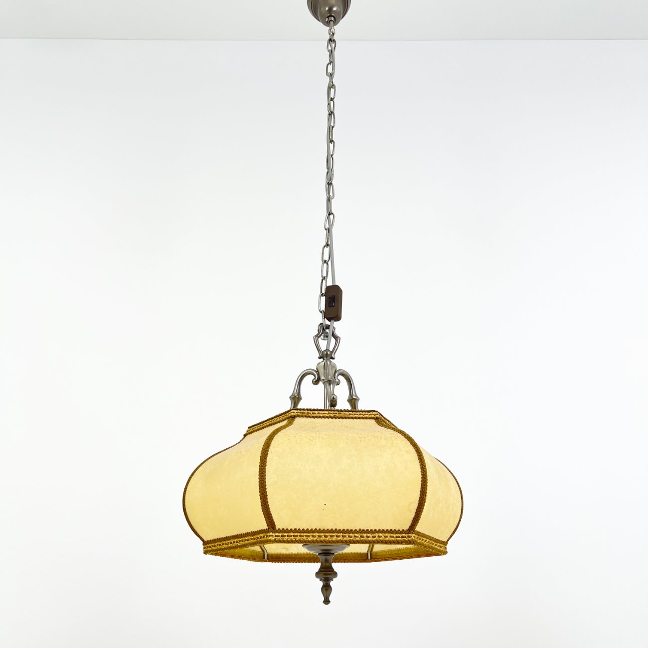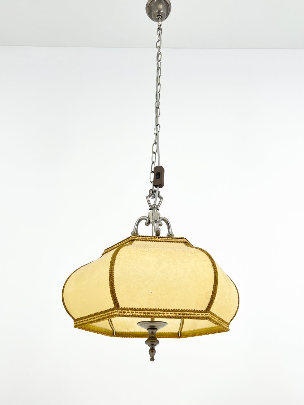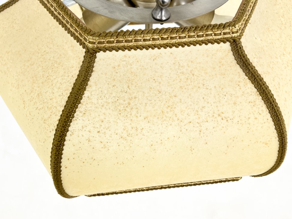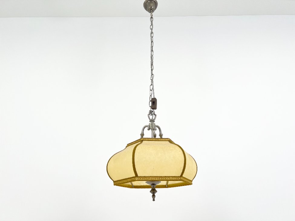 Pakabinamas Hillebrand-Leuchten šviestuvas odiniu gaubtu.