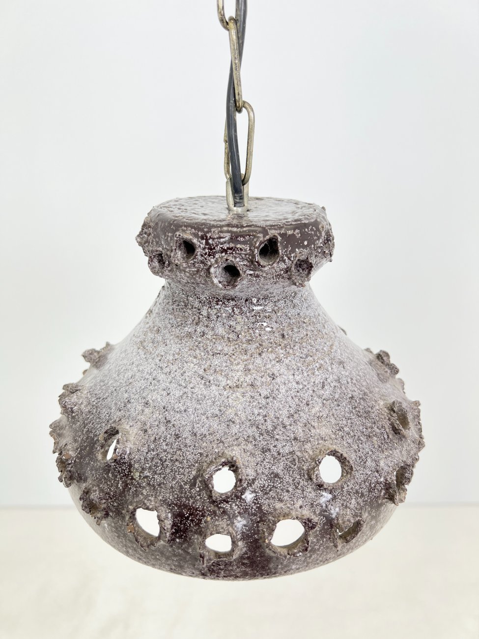 Pakabinamas keramikinis šviestuvas.