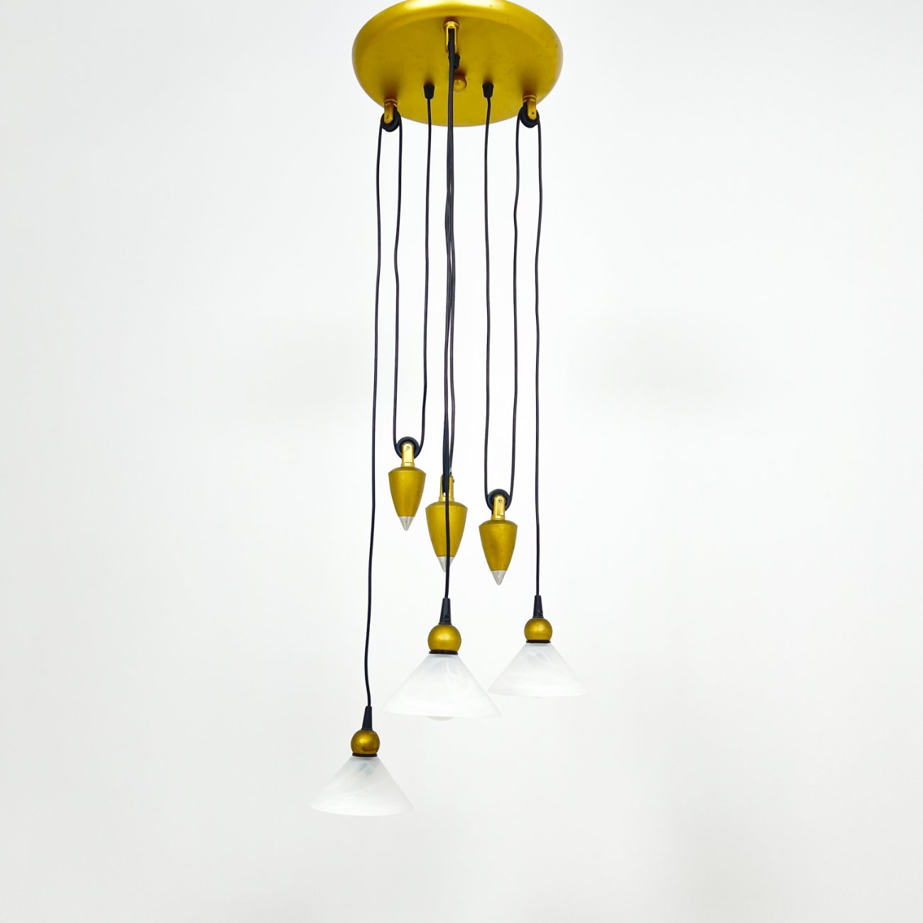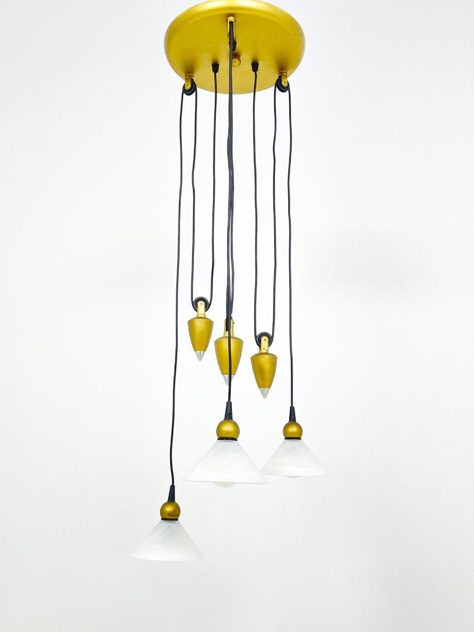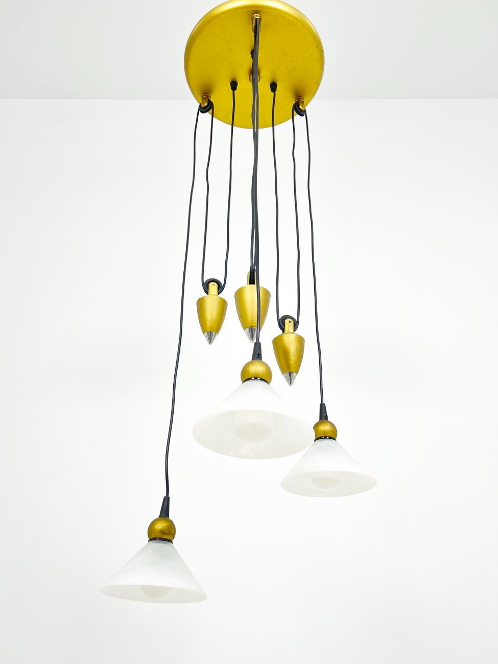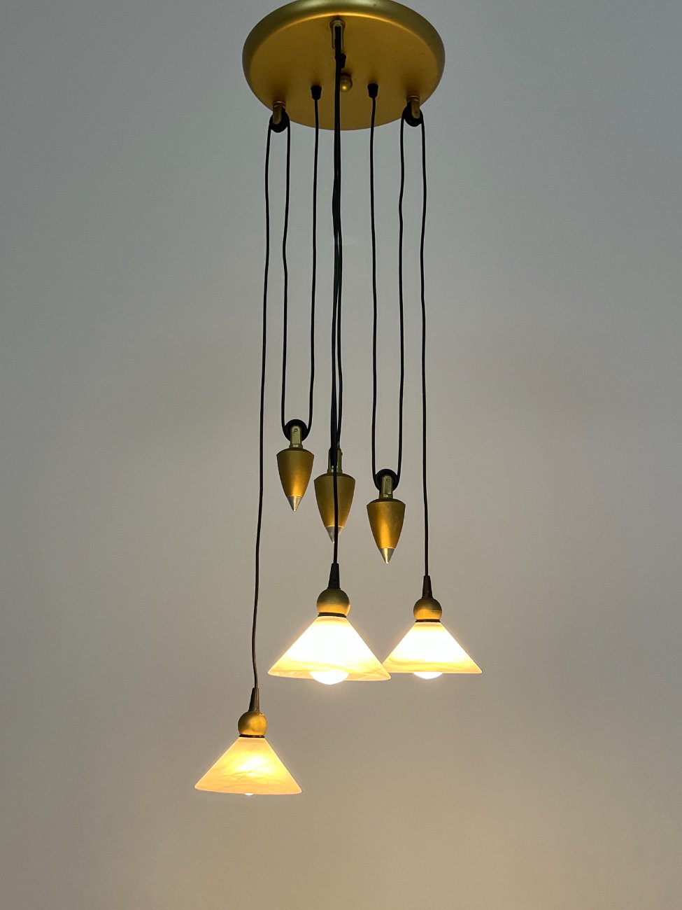 Pakabinamas svareliais reguliuojamo aukščio trijų šakų šviestuvas 40x40x103 cm