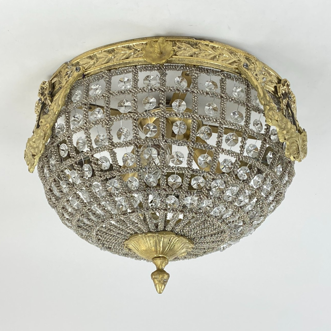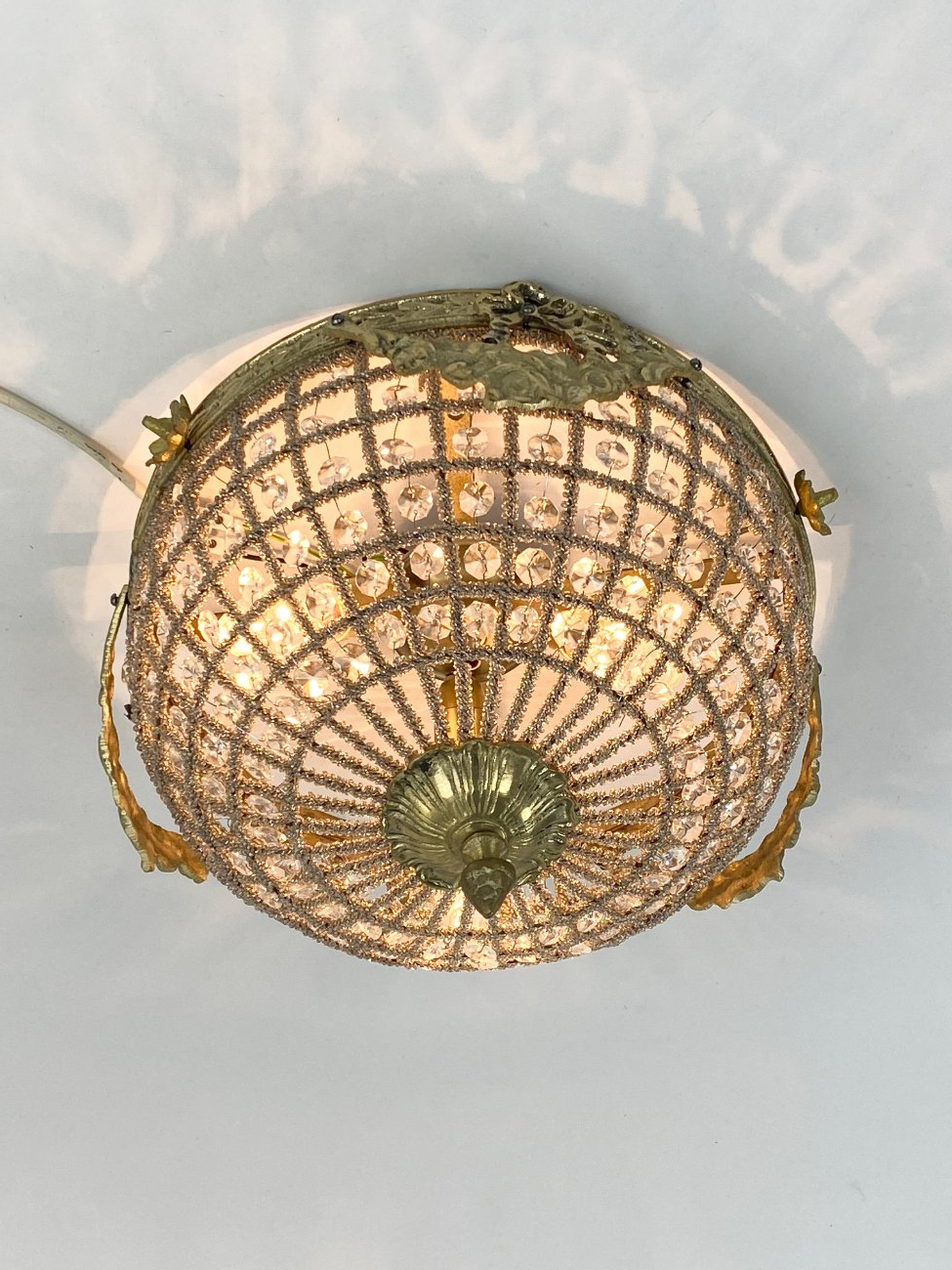 Pakabinamas šviestuvas su žalvario detalėm ir stiklo karoliukais 35x35x24 cm