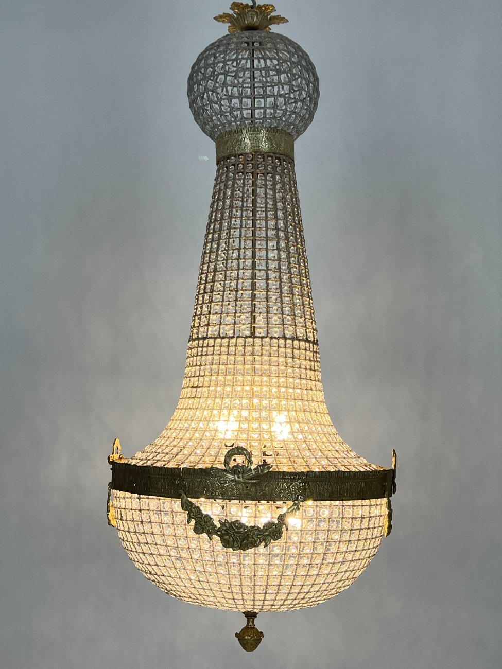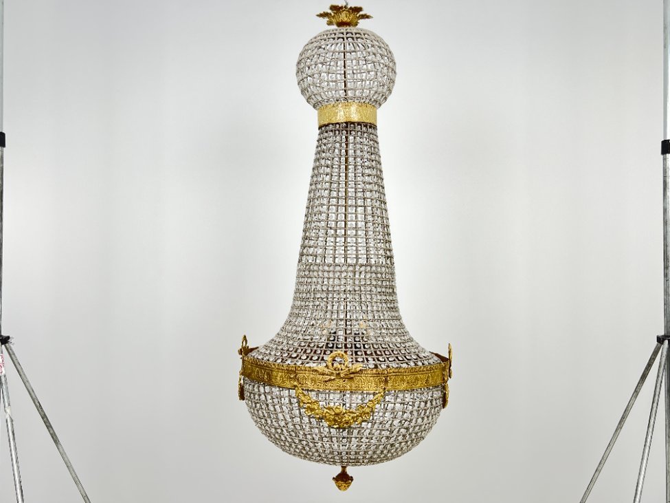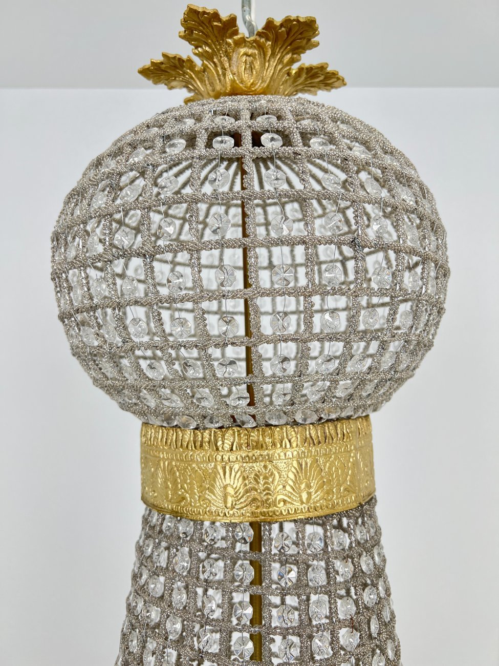 Pakabinamas šviestuvas su žalvariu ir stiklinėmis detalėmis 80x80x172 cm
