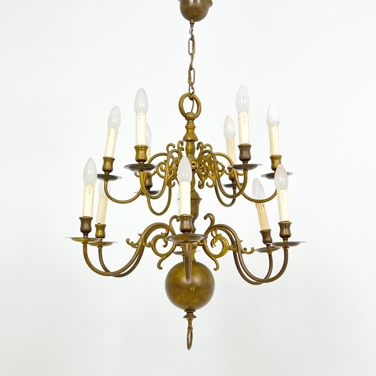 Žalvarinis dviejų aukštų, dvylikos šakų sietynas.