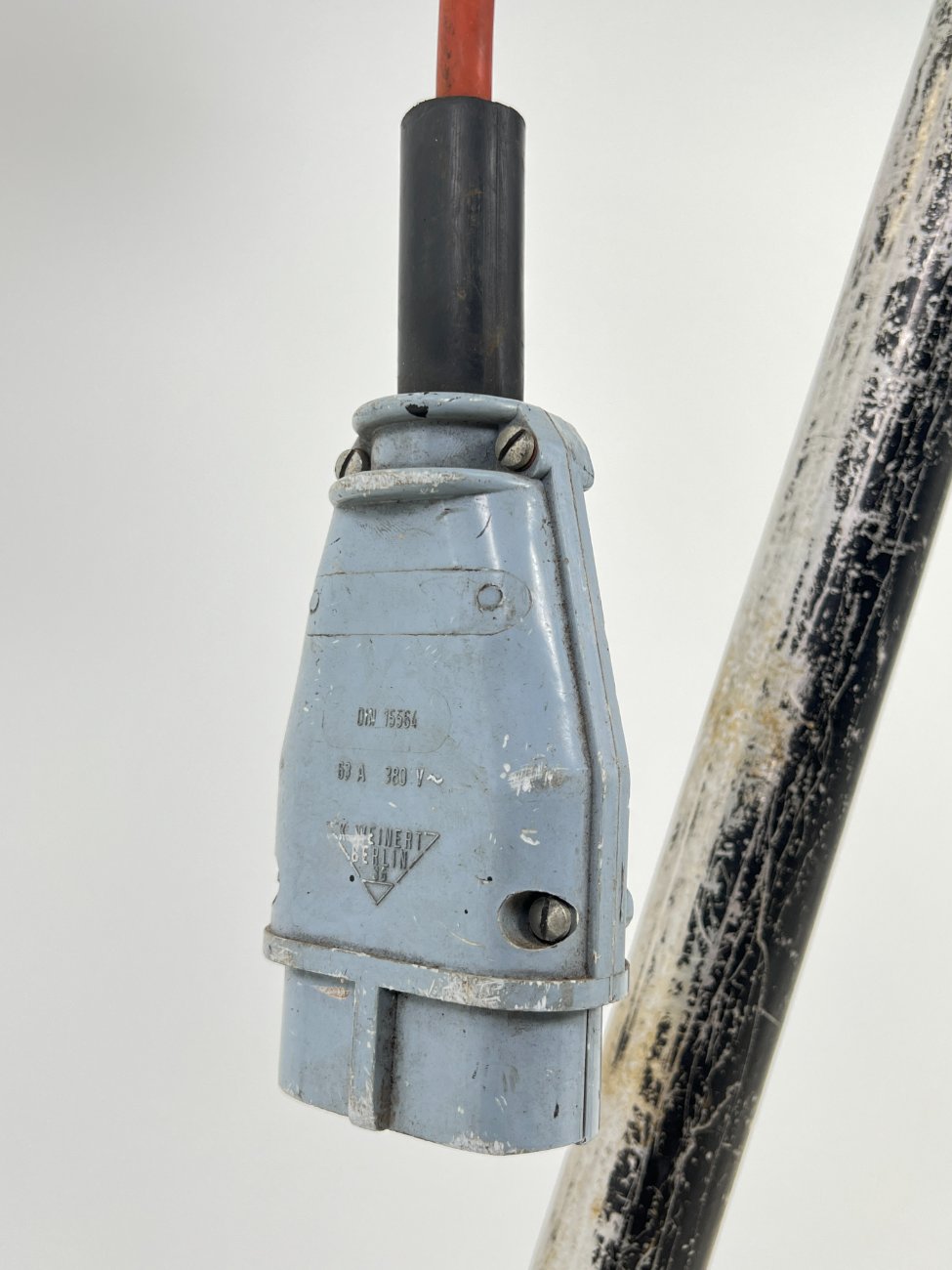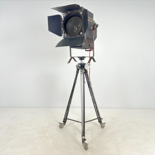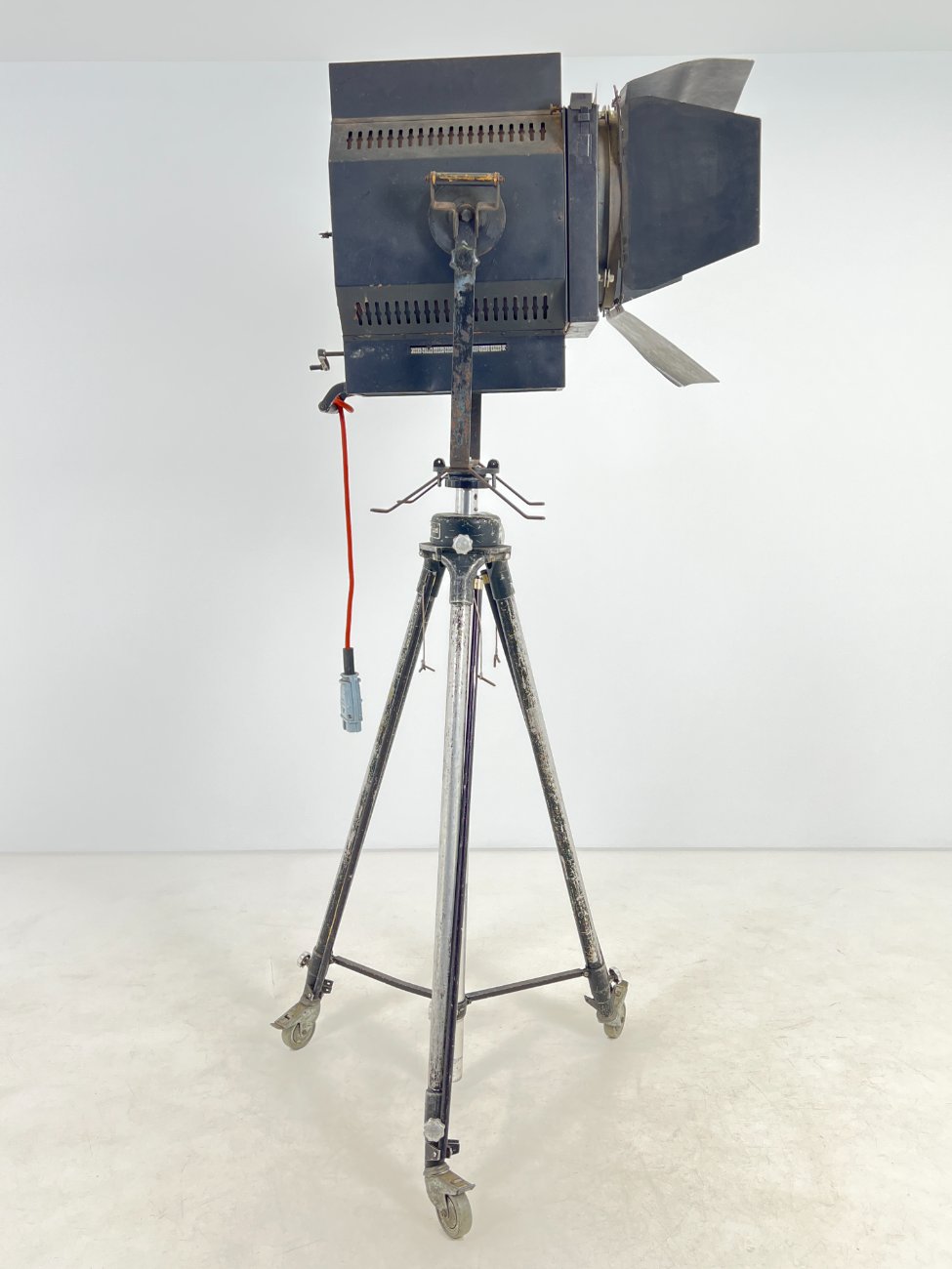 Vintažinis “Reiche & Vogel Leuchtkunst” Berlin SO 36 pramoninis prožektorius su trikoju stovu.