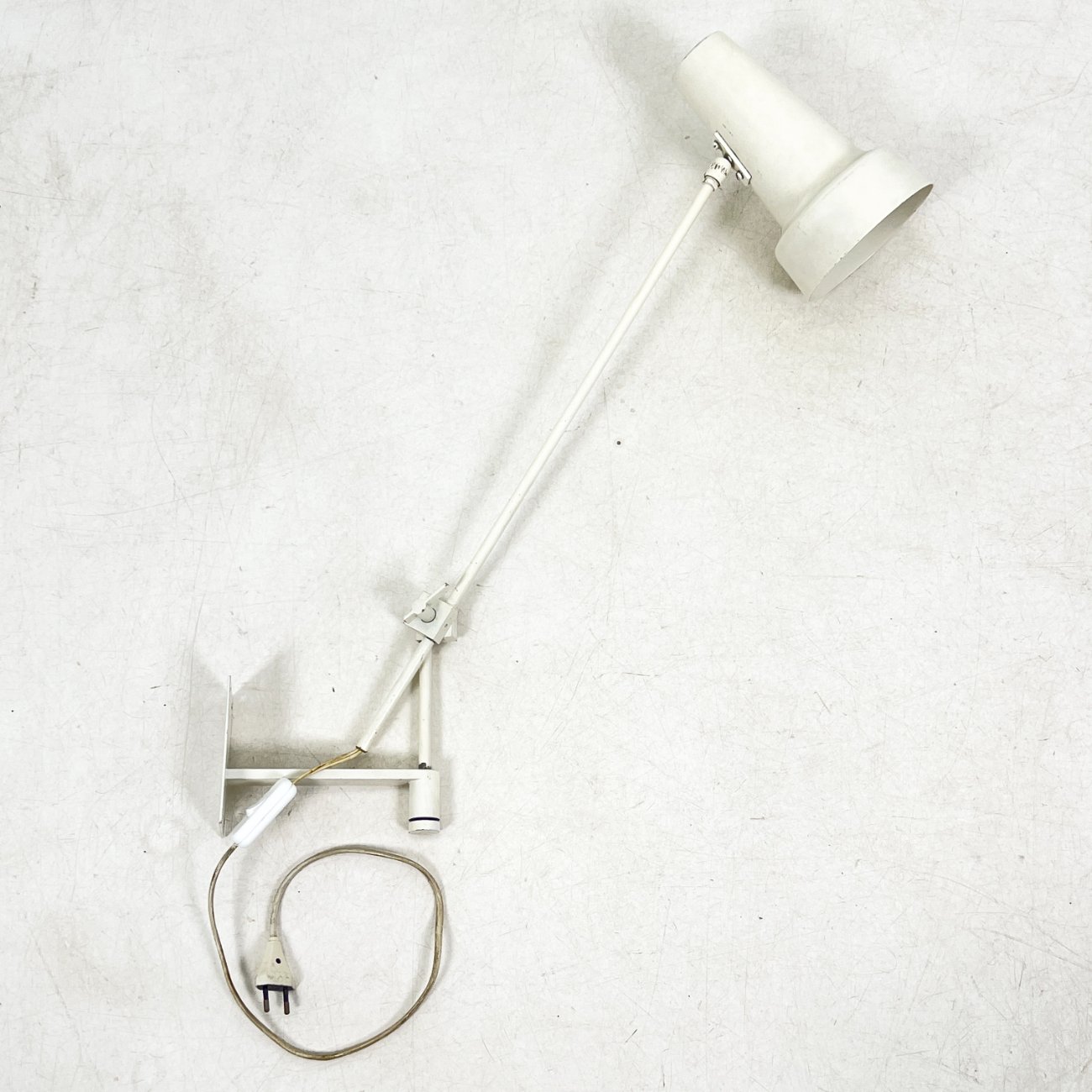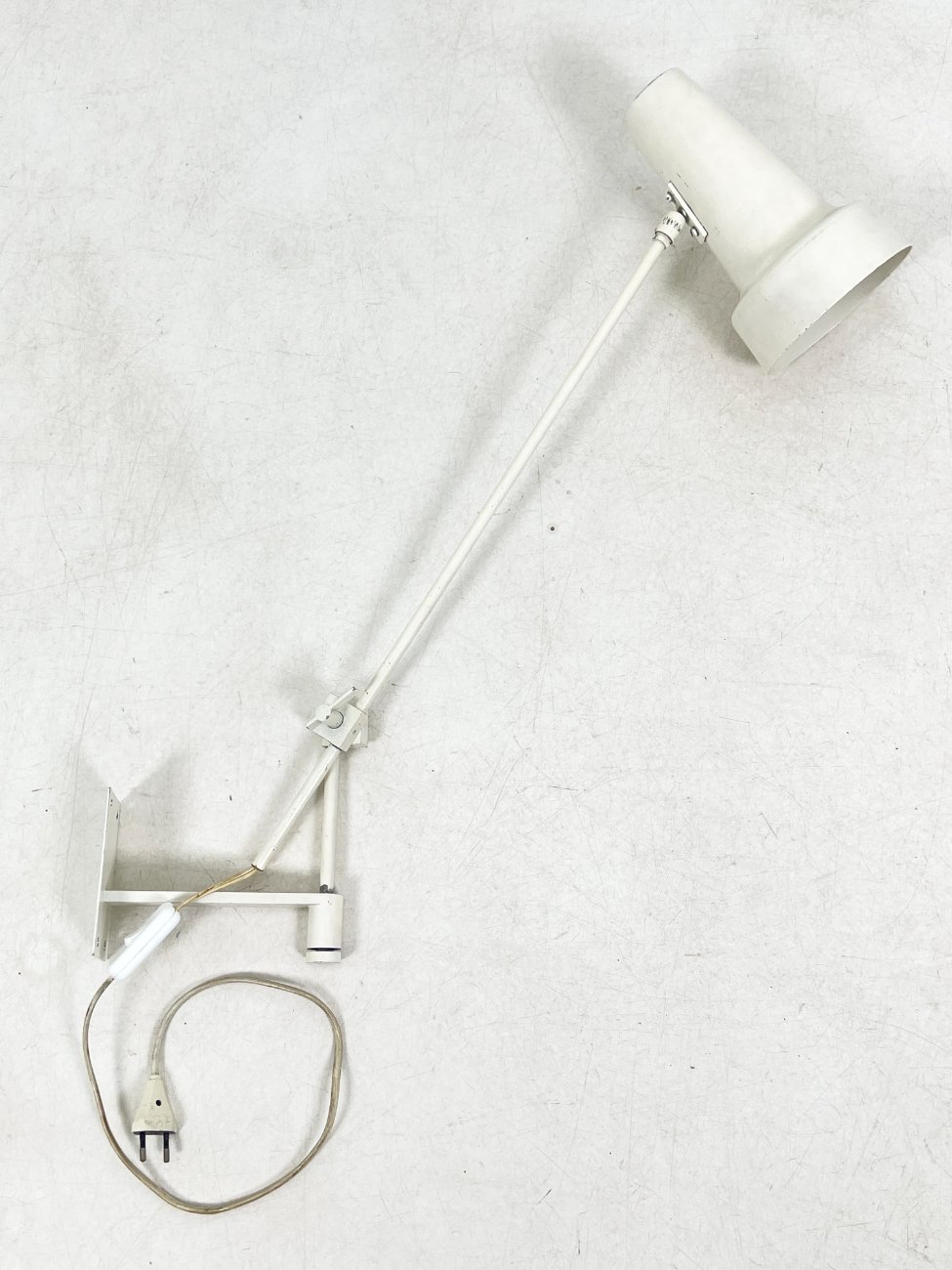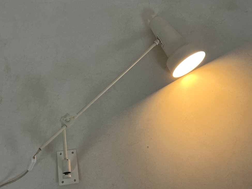 Baltos spalvos metalinis reguliuojamas sieninis šviestuvas.