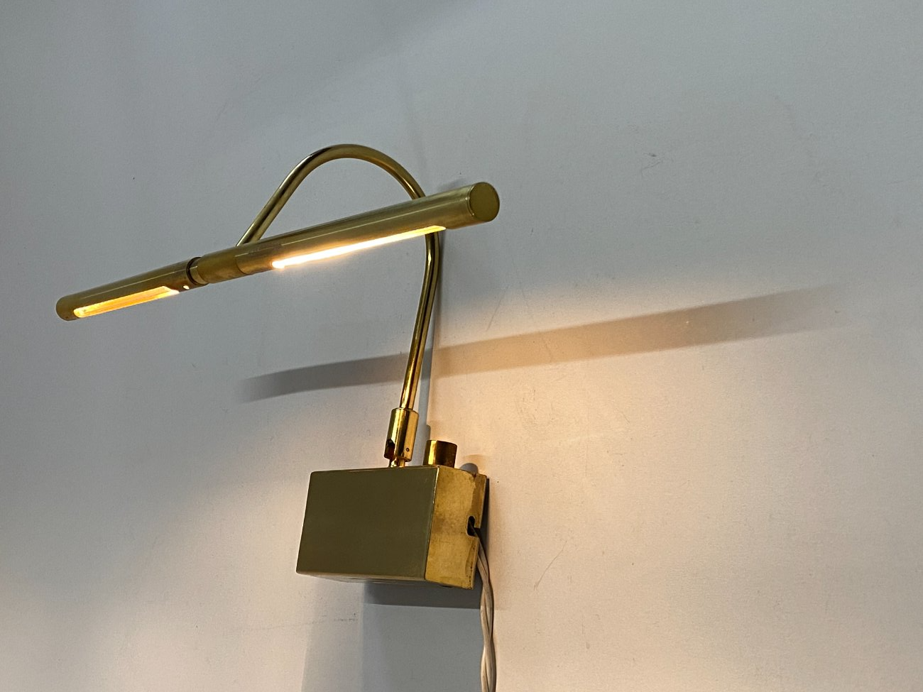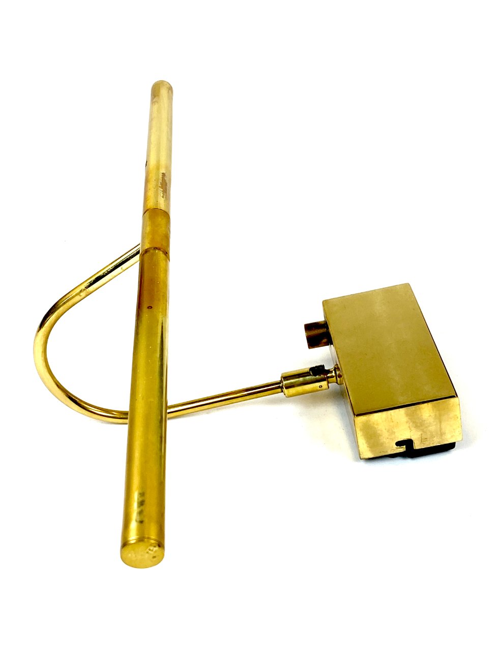 Sieninis žalvarinis reguliuojamas paveikslo apšvietimo šviestuvas su dimeriu.