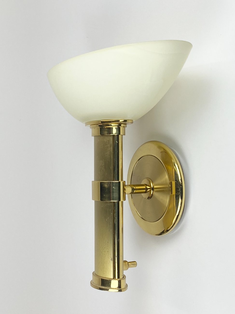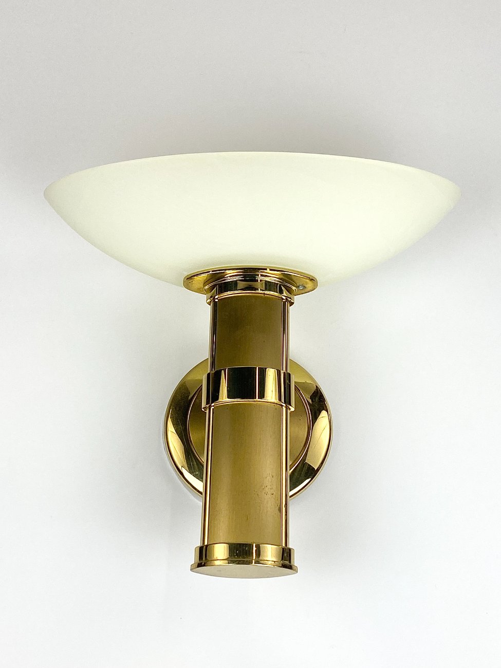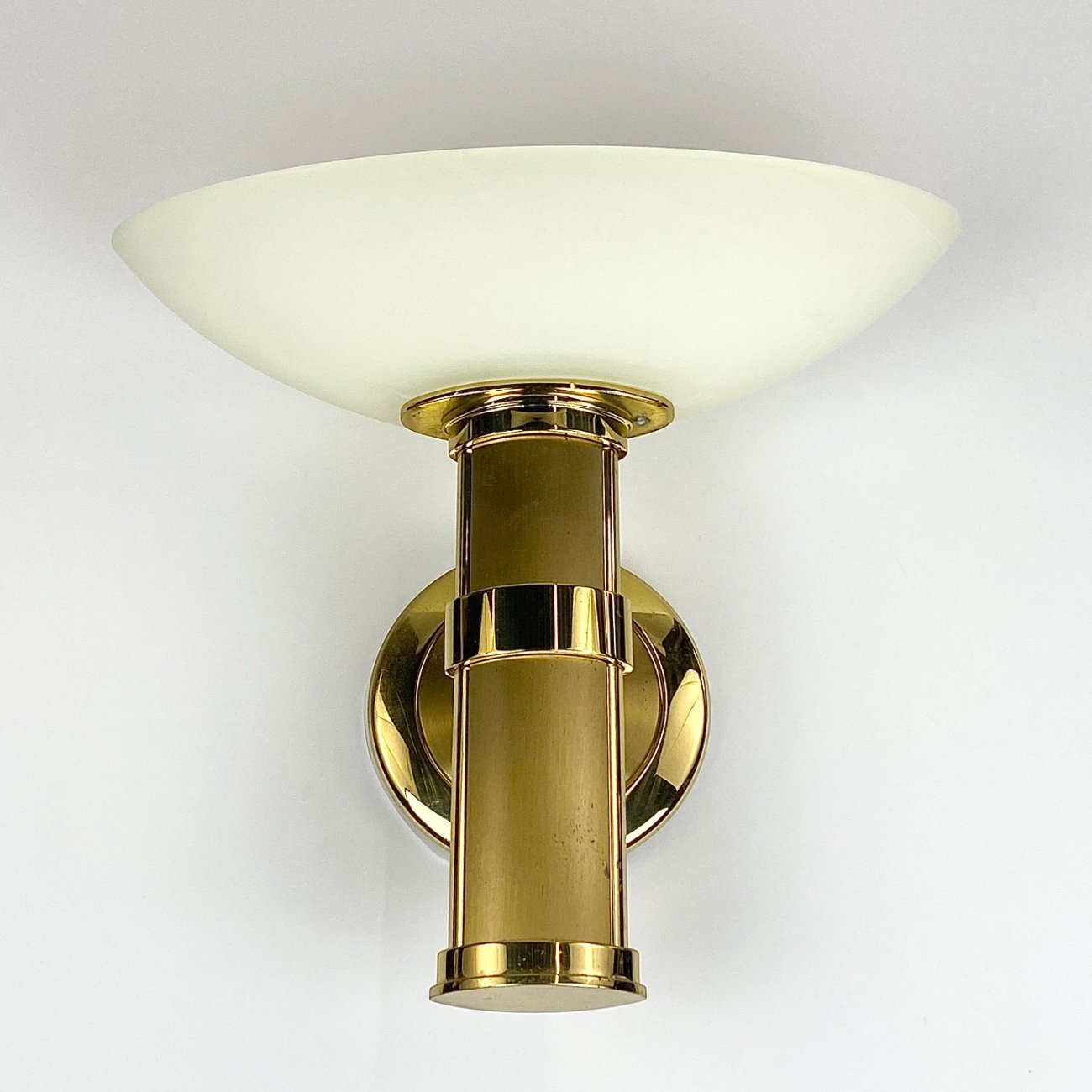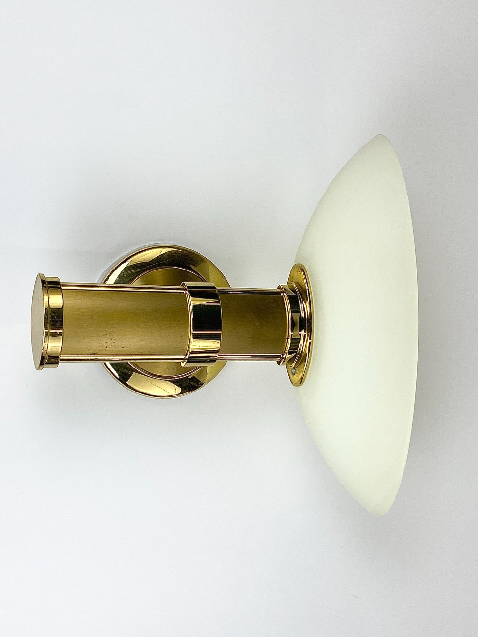 Žalvarinis sieninis B+M Leuchten šviestuvas stiklo gaubtu, modelis Palais.