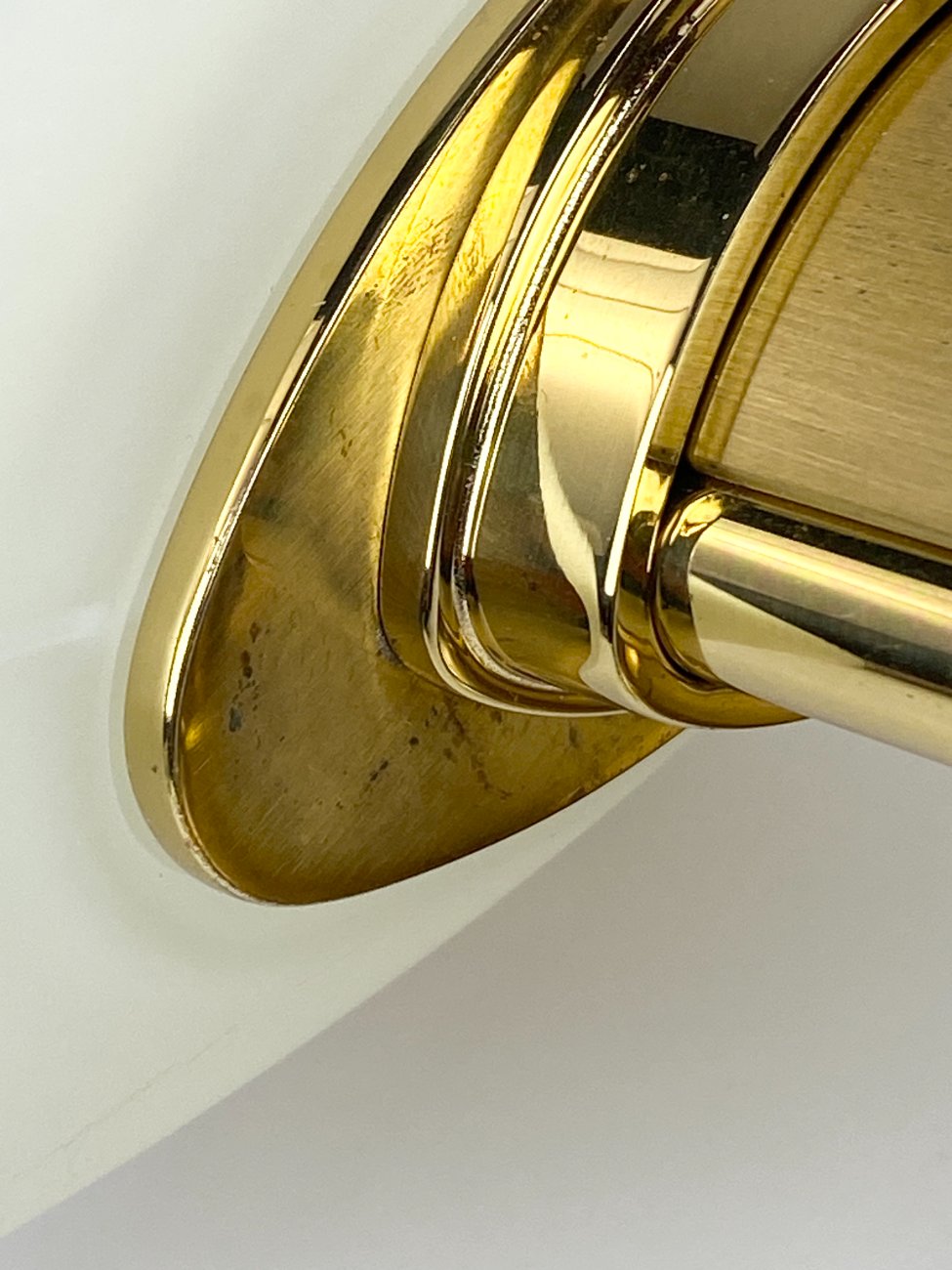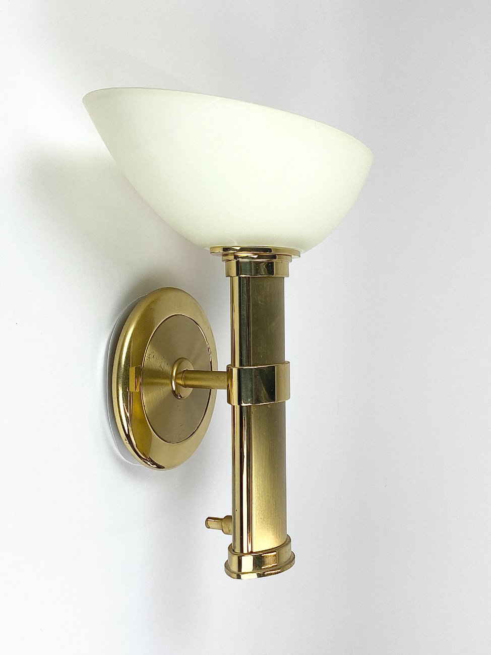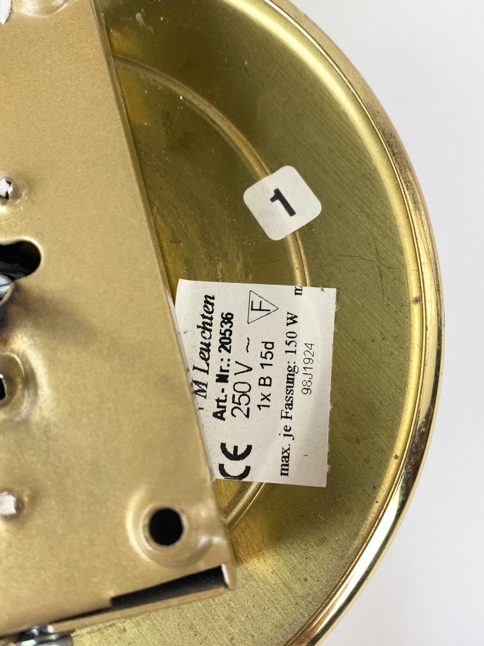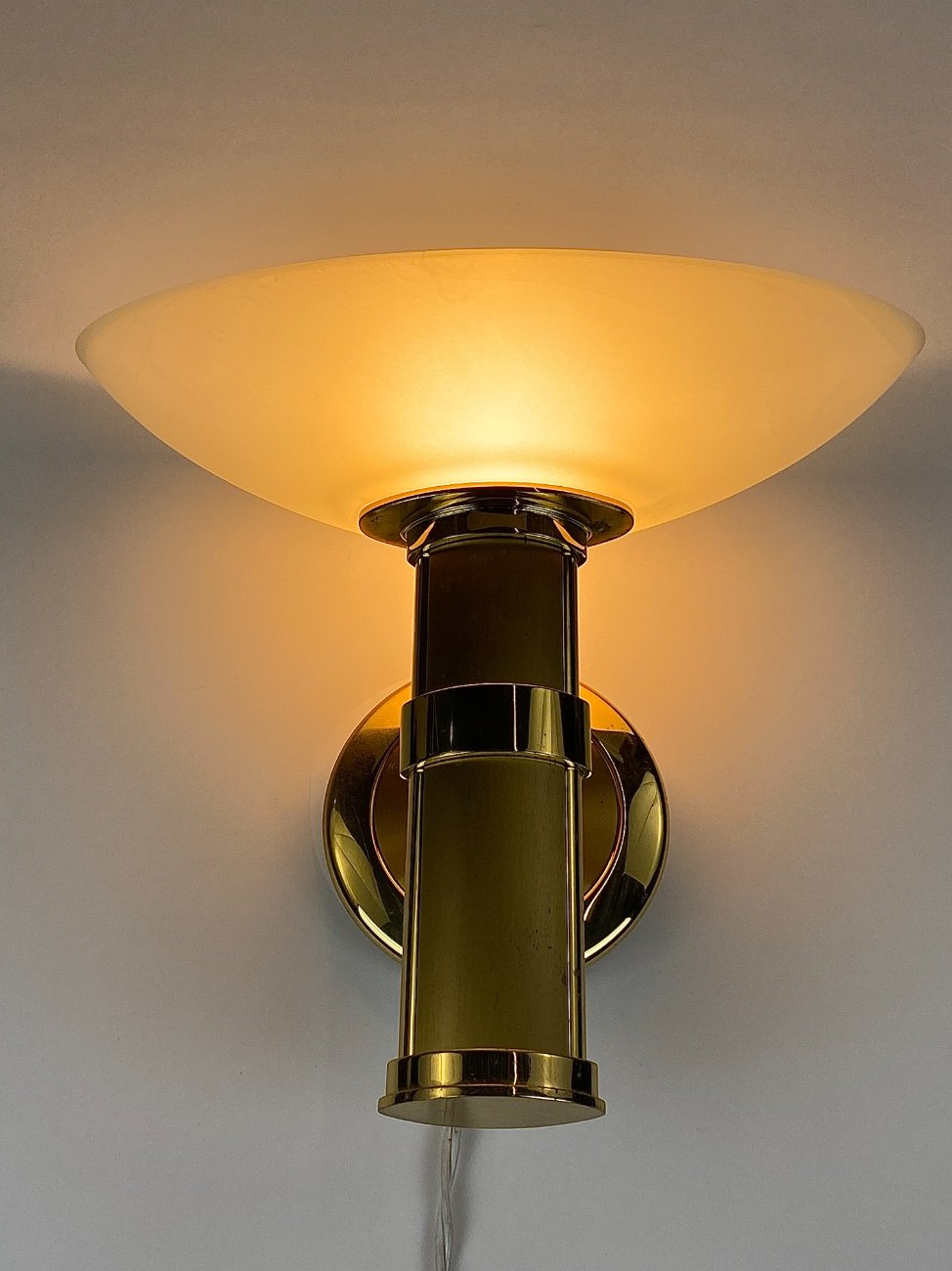 Žalvarinis sieninis B+M Leuchten šviestuvas stiklo gaubtu, modelis Palais.