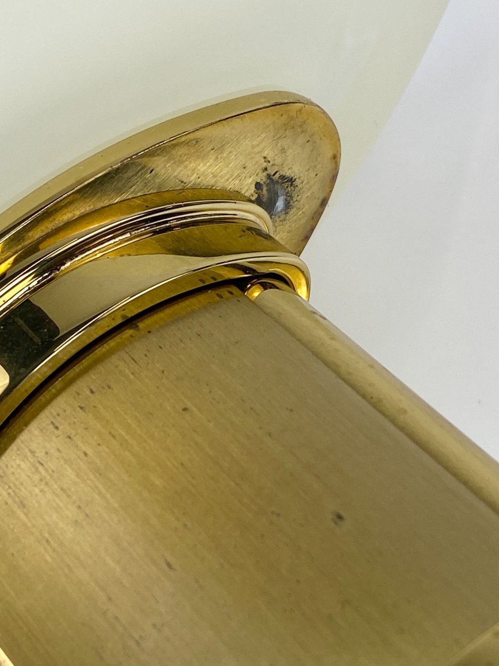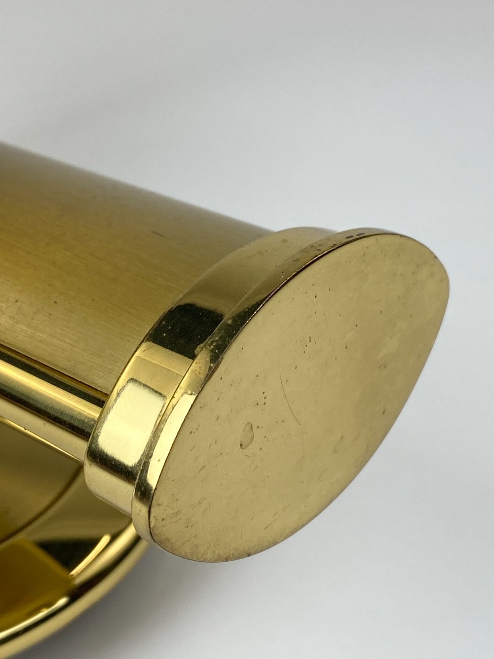 | Papildoma informacija | Subraižyta žalvarinė dalis, matoma žalvario oksidacija. Ant viršutinės gaubto kraštinės yra keletas nežymių įmušimų. Vidinėje gaubto dalyje įbrėžti stiklo dažai. |