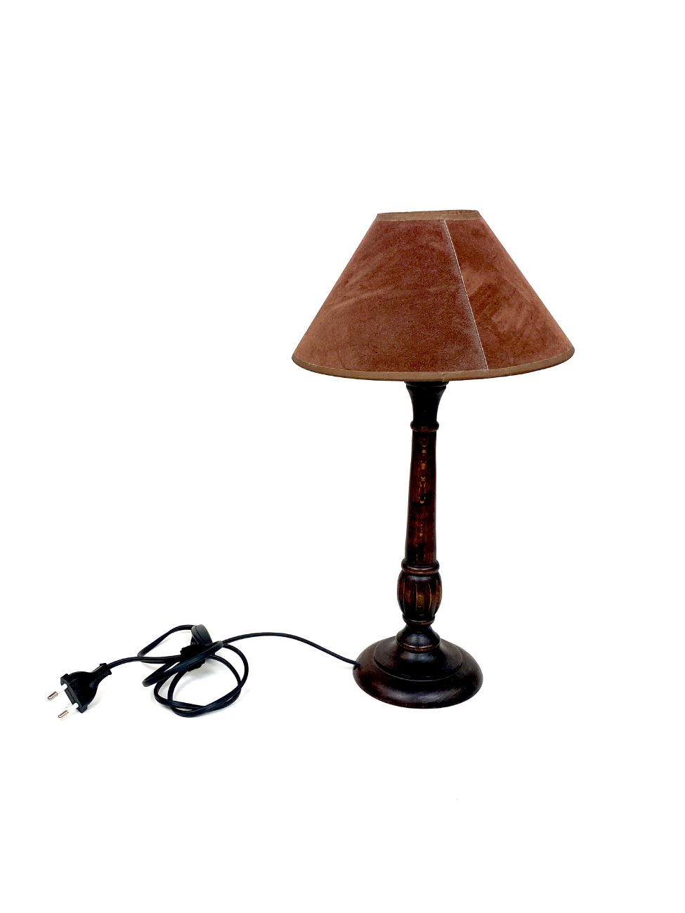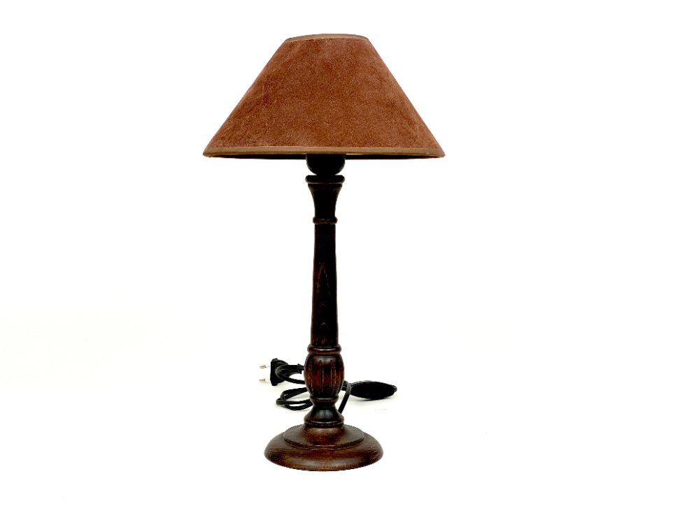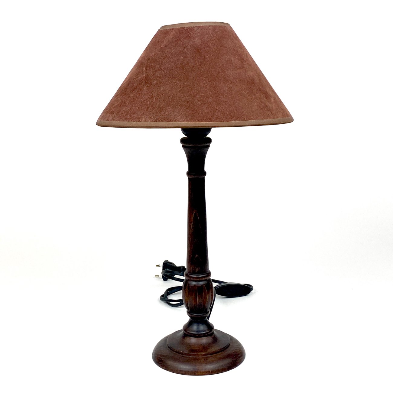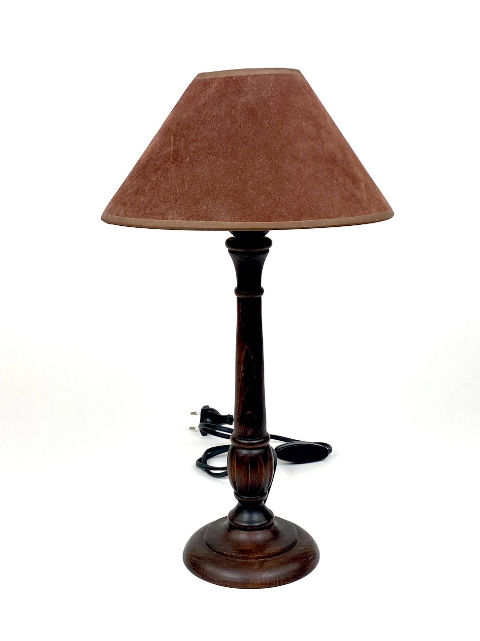 Medinis “Bellino” stalinis šviestuvas tekstilės gaubtu.