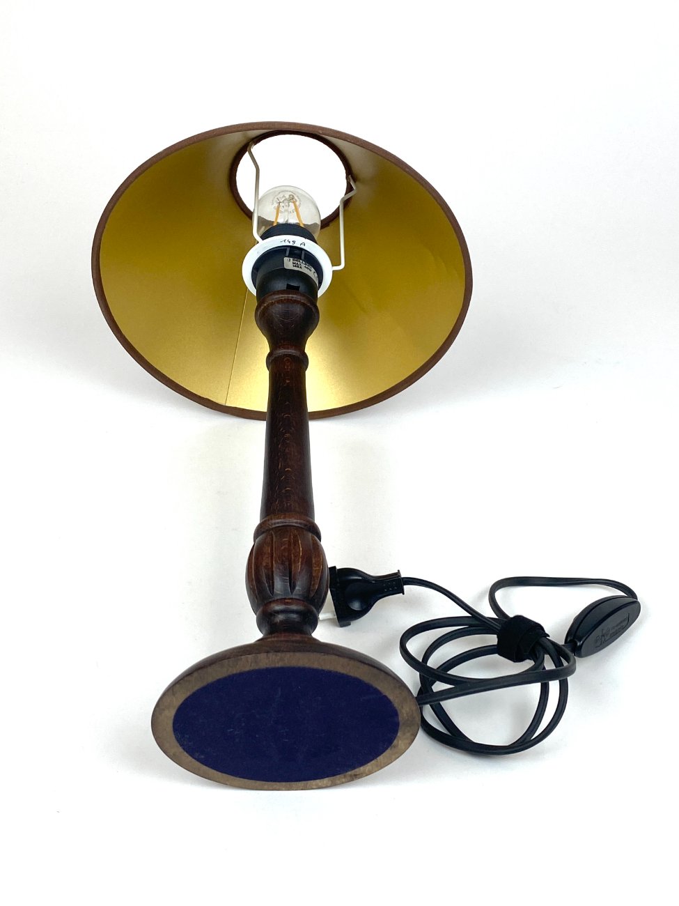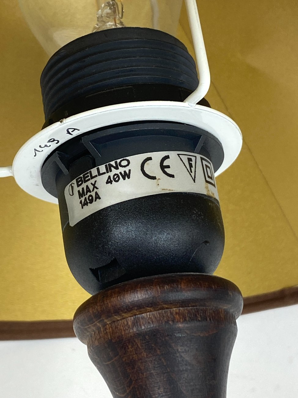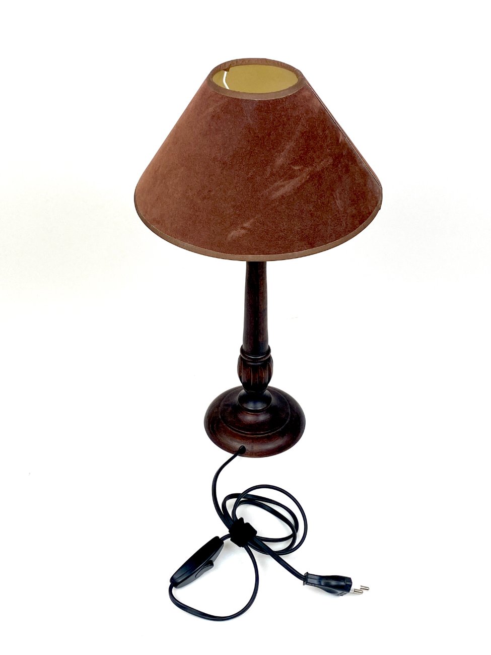 Medinis “Bellino” stalinis šviestuvas tekstilės gaubtu.