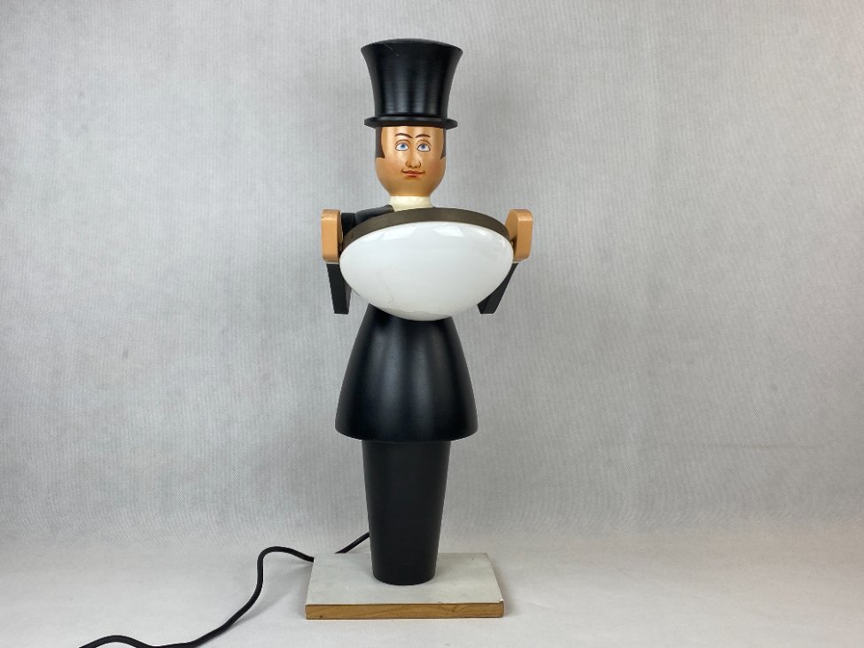 Medinis stalinis šviestuvas stikliniu gaubtu “Padavėjas” 30x21x59 cm