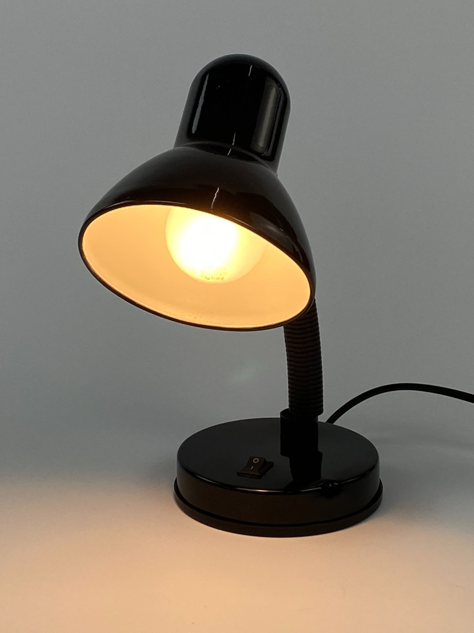 Metalinis juodos spalvos reguliuojamas stalinis šviestuvas.