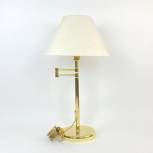 Reguliuojamas “Wofi Leuchten” žalvario stalinis šviestuvas šviesiu gaubtu.