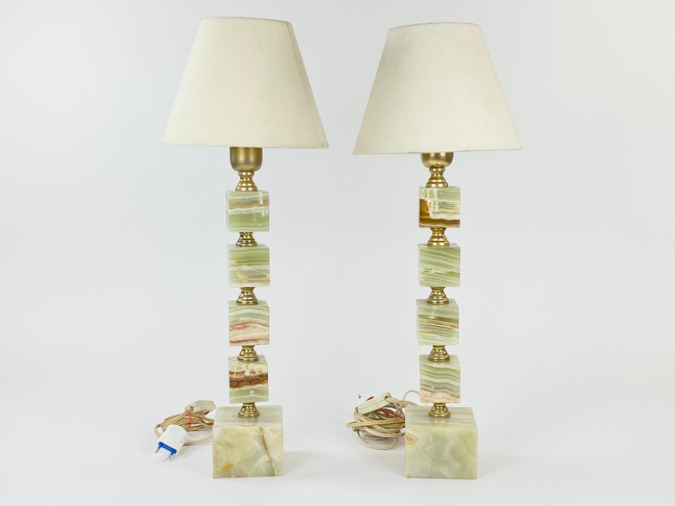 Staliniai šviestuvai iš onikso ir žalvario 2 vnt. komplektas 21x21x57,5 cm