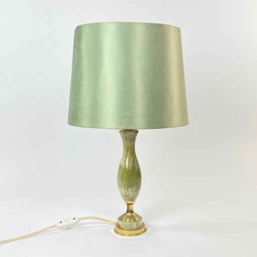 Stalinis šviestuvas iš žalvario ir onikso žalsvos spalvos gaubtu.