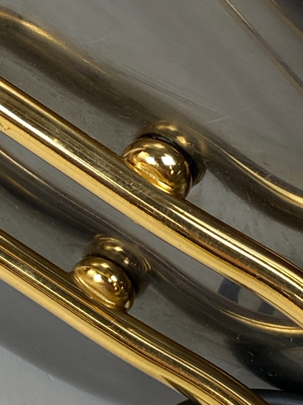 | Papildoma informacija | Per visą paviršių yra pabraižymų. Ant gaubto yra įlenkimų. Ant pagrindo vietomis apsitrynusi metalo danga. |