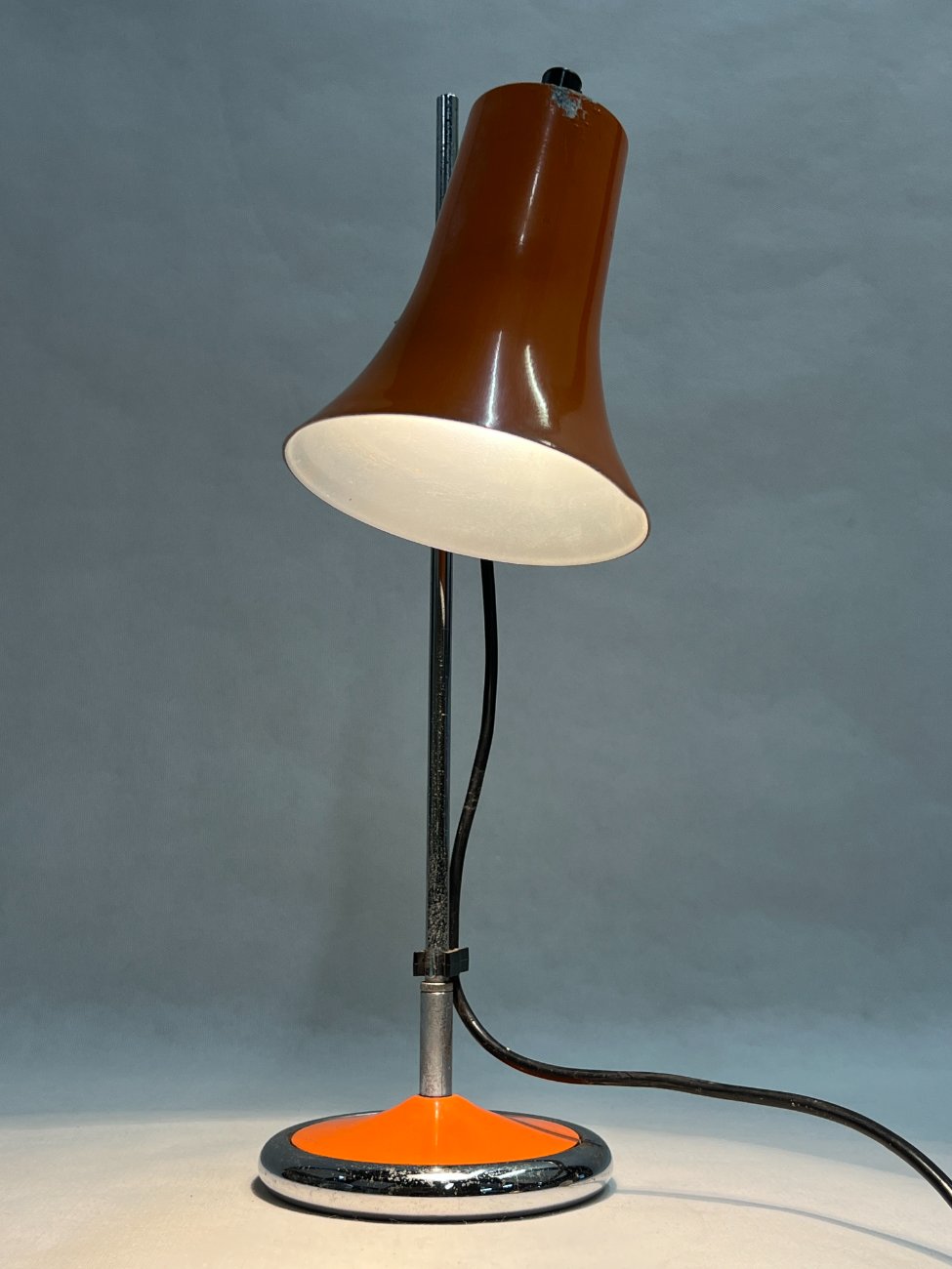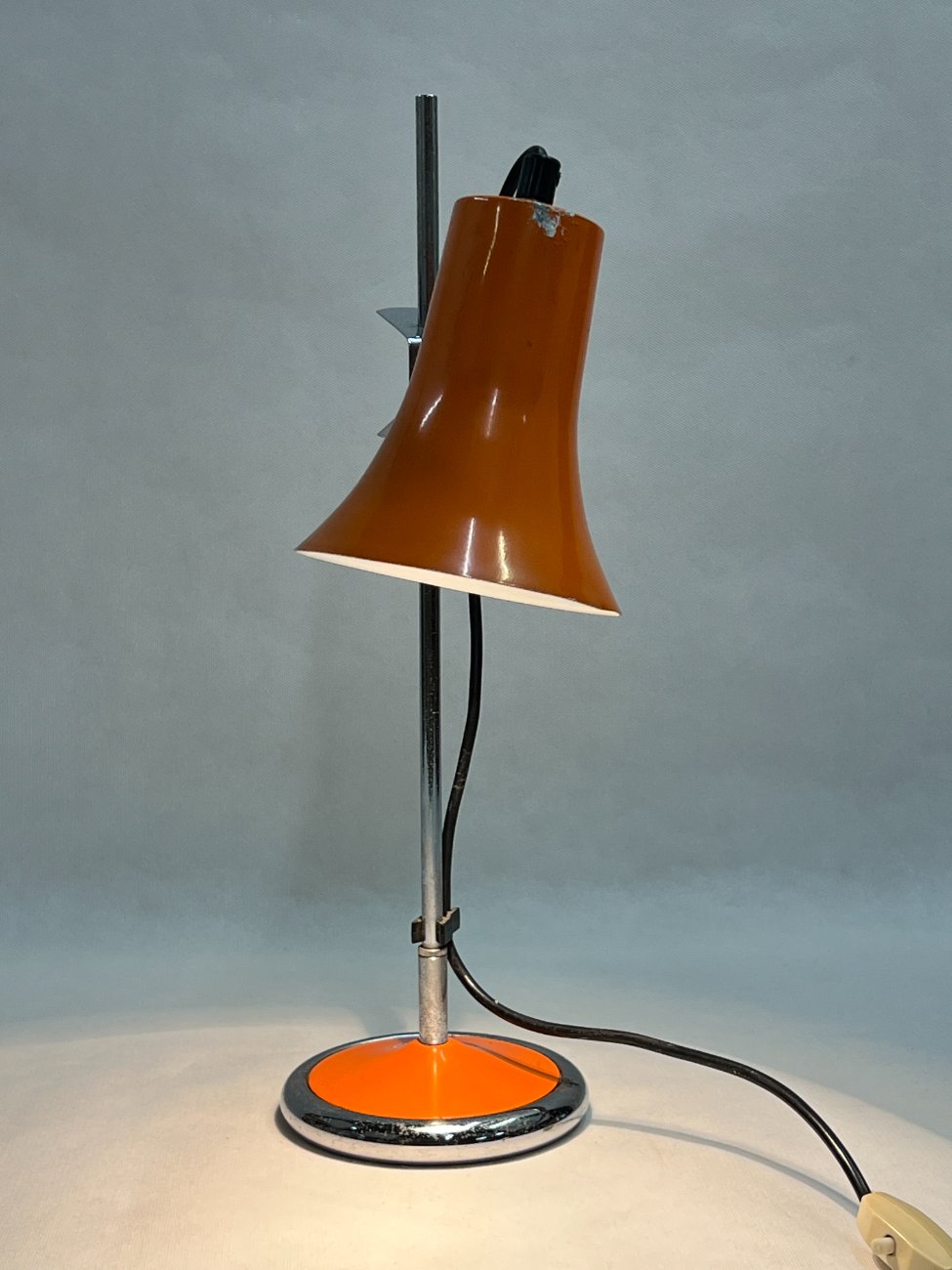 Vintažinis oranžinis reguliuojamo kampo stalinis šviestuvas 26x14x46 cm