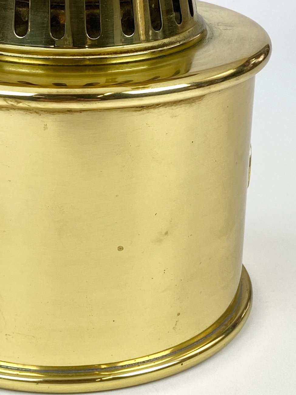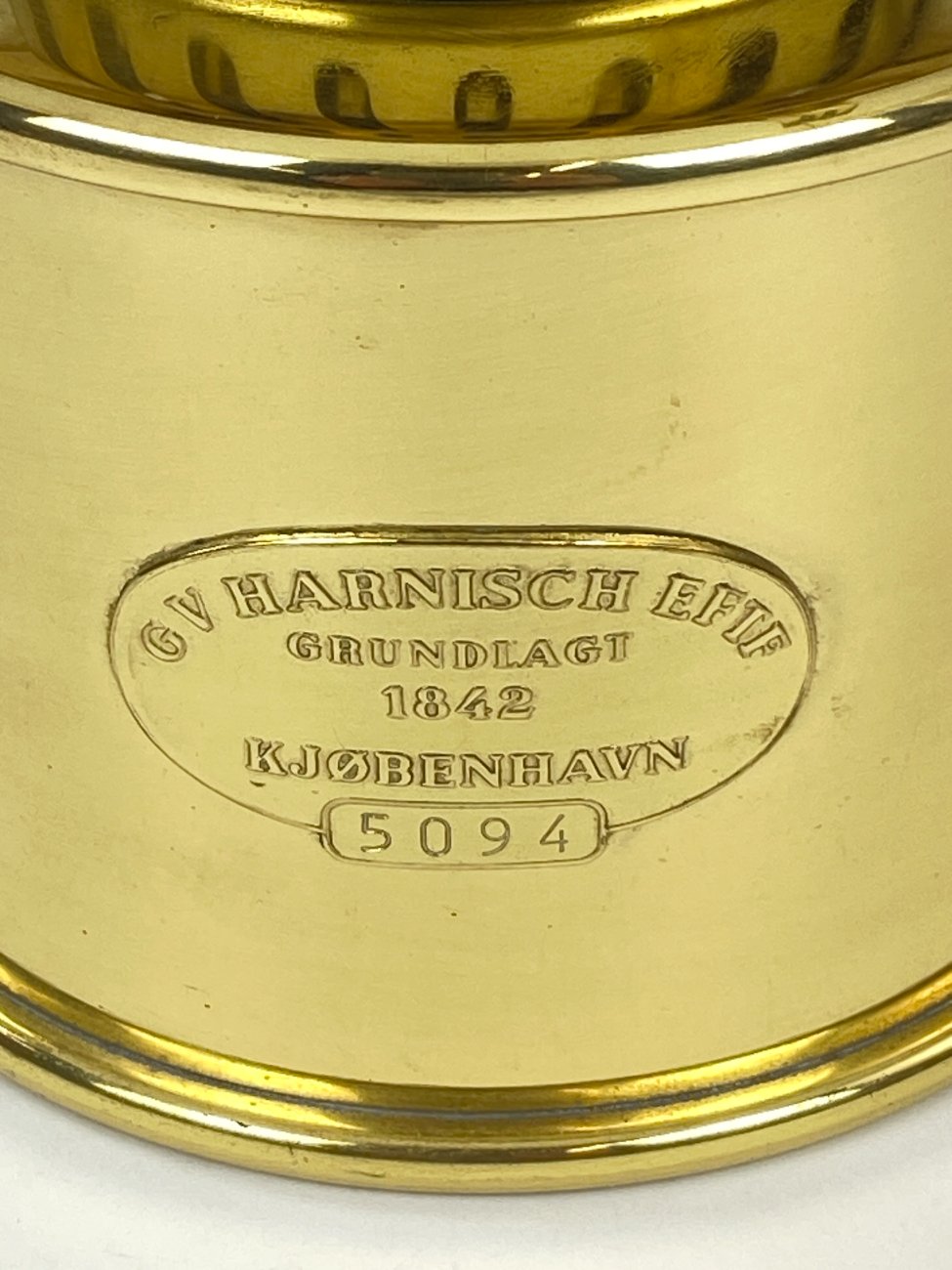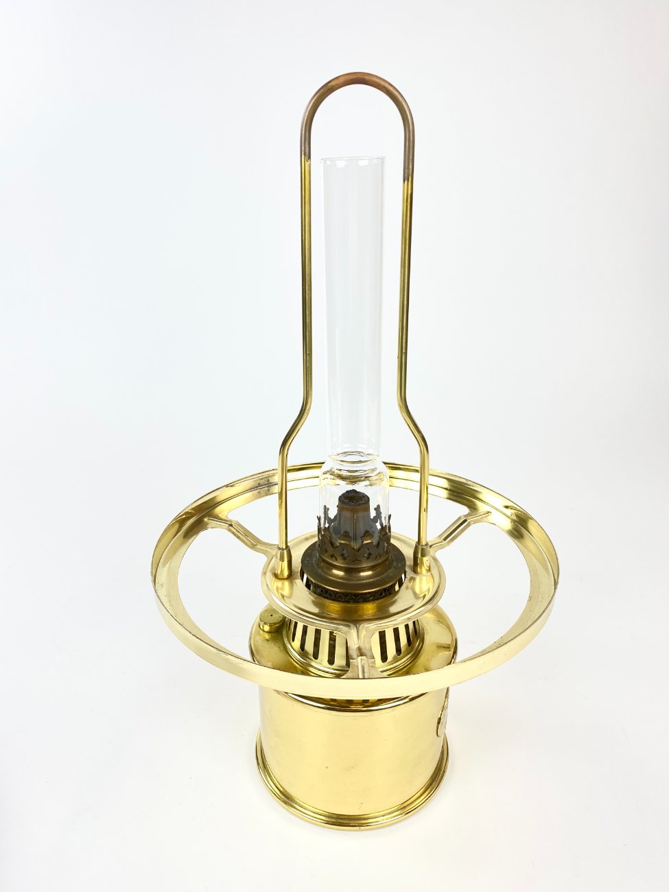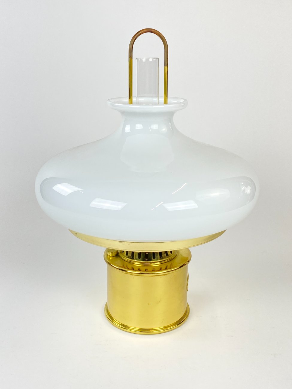 Daniška G.V. Harnisch Eftf. žalvarinė žibalinė lempa stikliniu gaubtu.