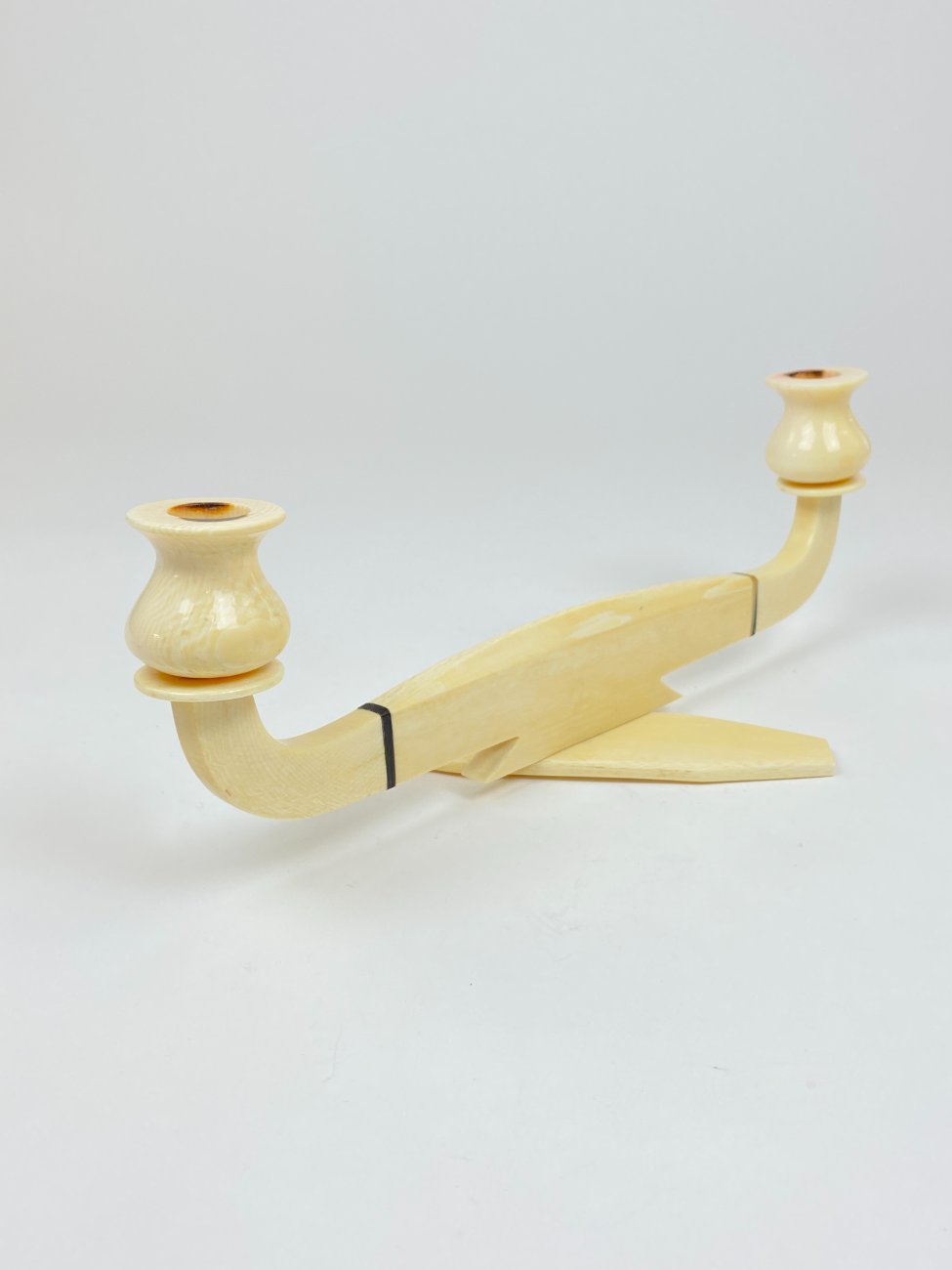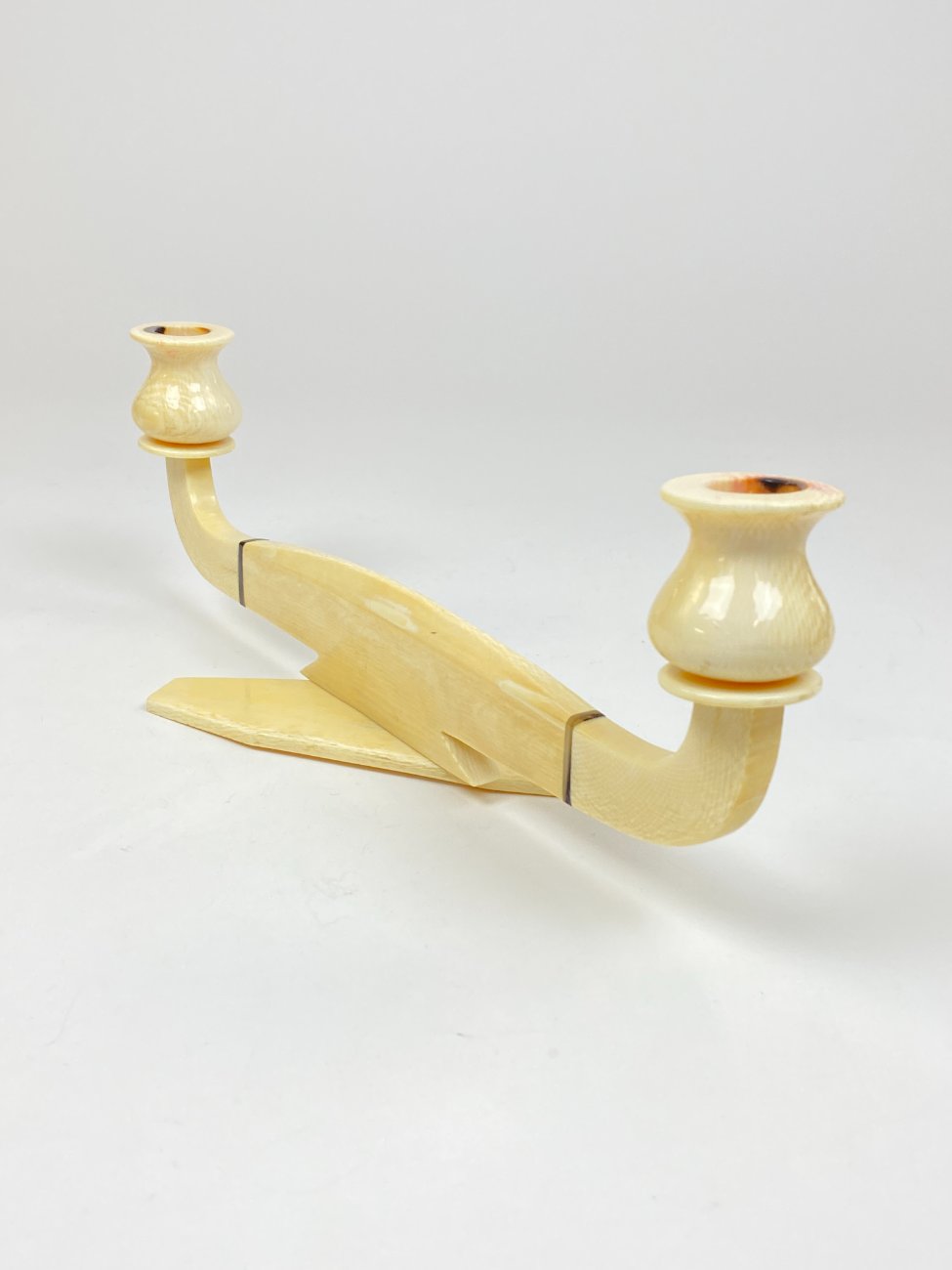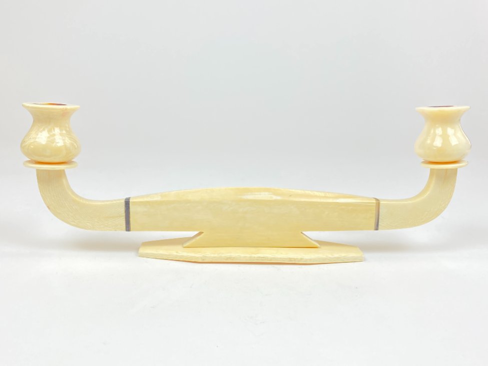 Art Deco dviejų šakų žvakidė iš kaulo.