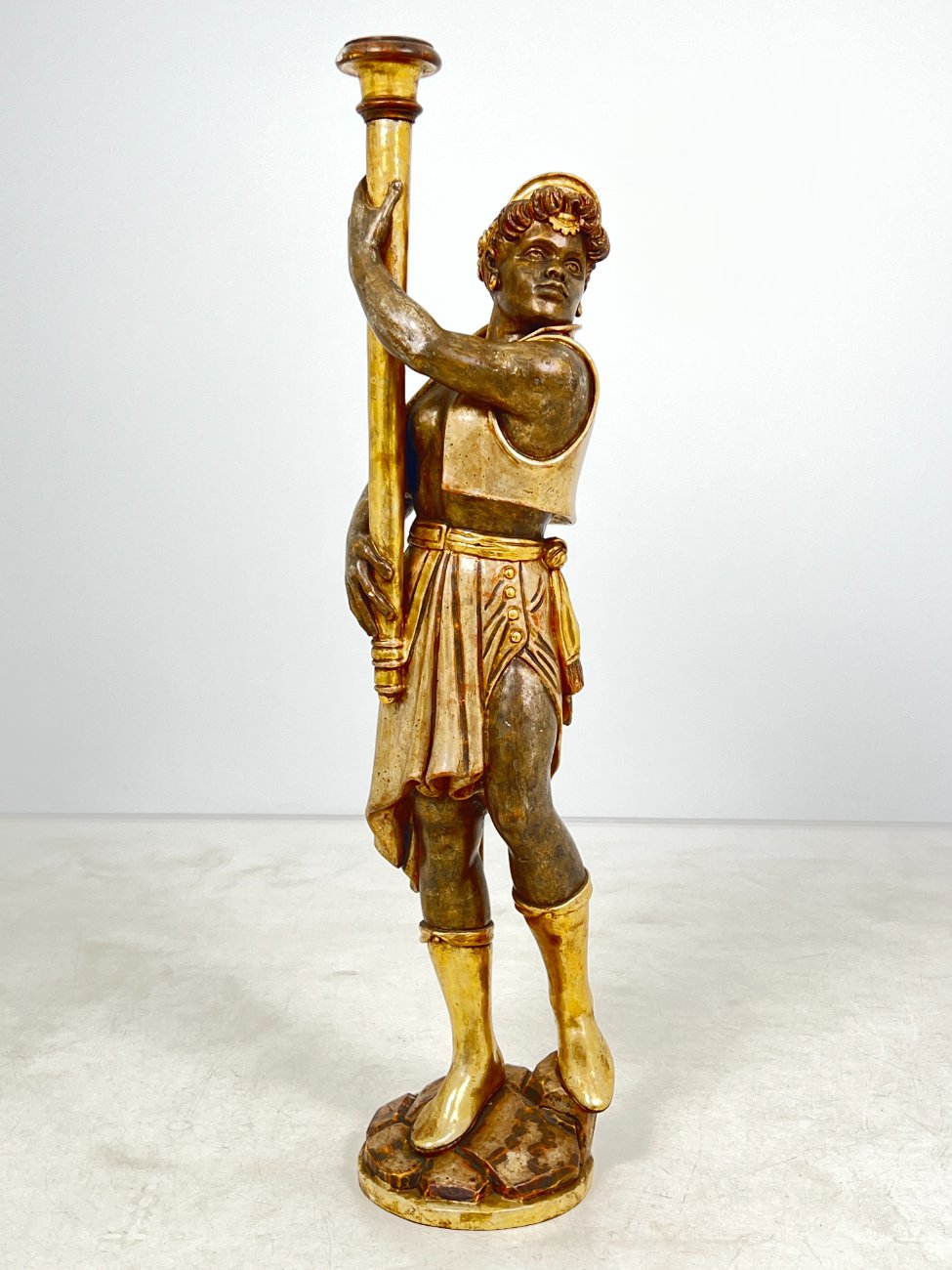 Medinė Blackamoor stiliaus žvakidė 35x33x136 cm