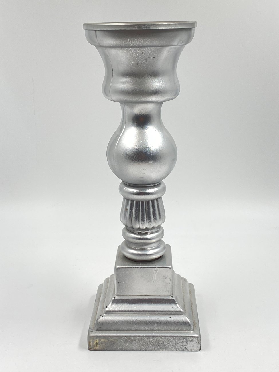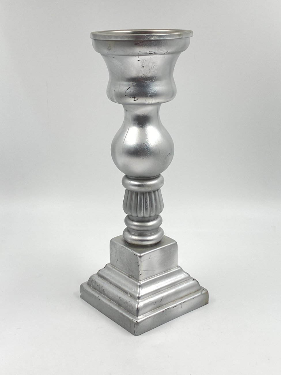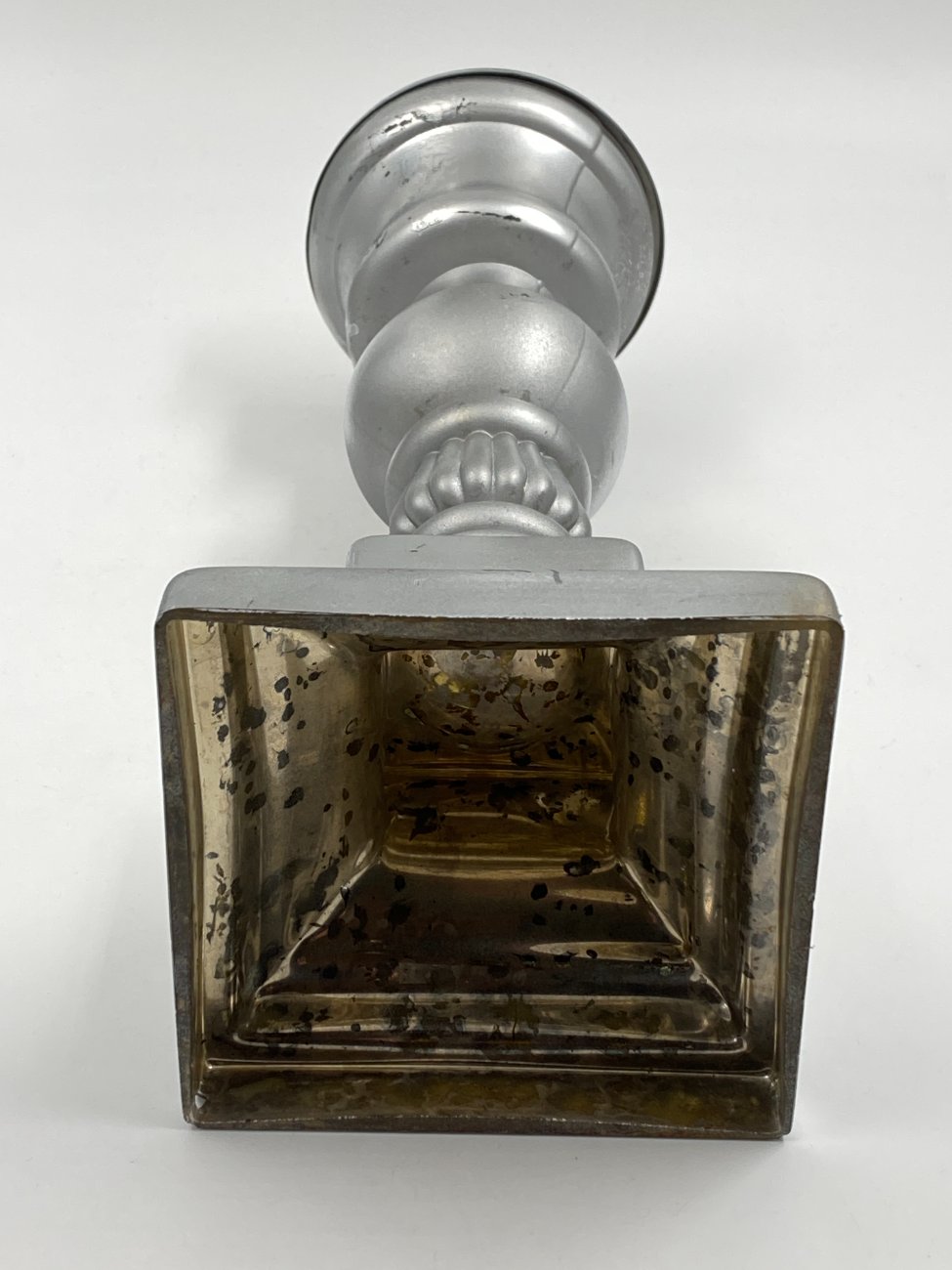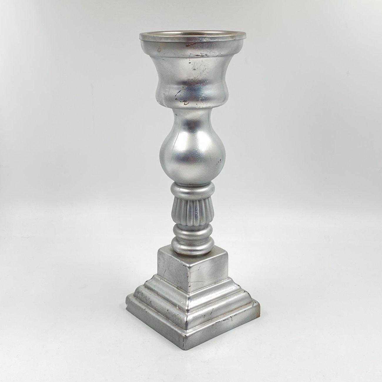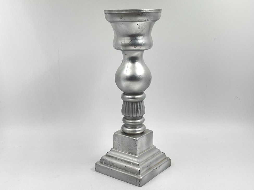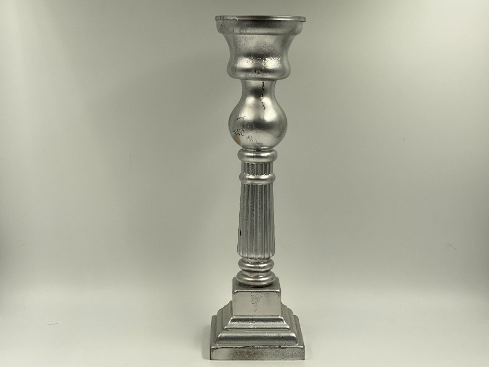 Sidabro spalvos stiklinė žvakidė 13x13x36,5 cm