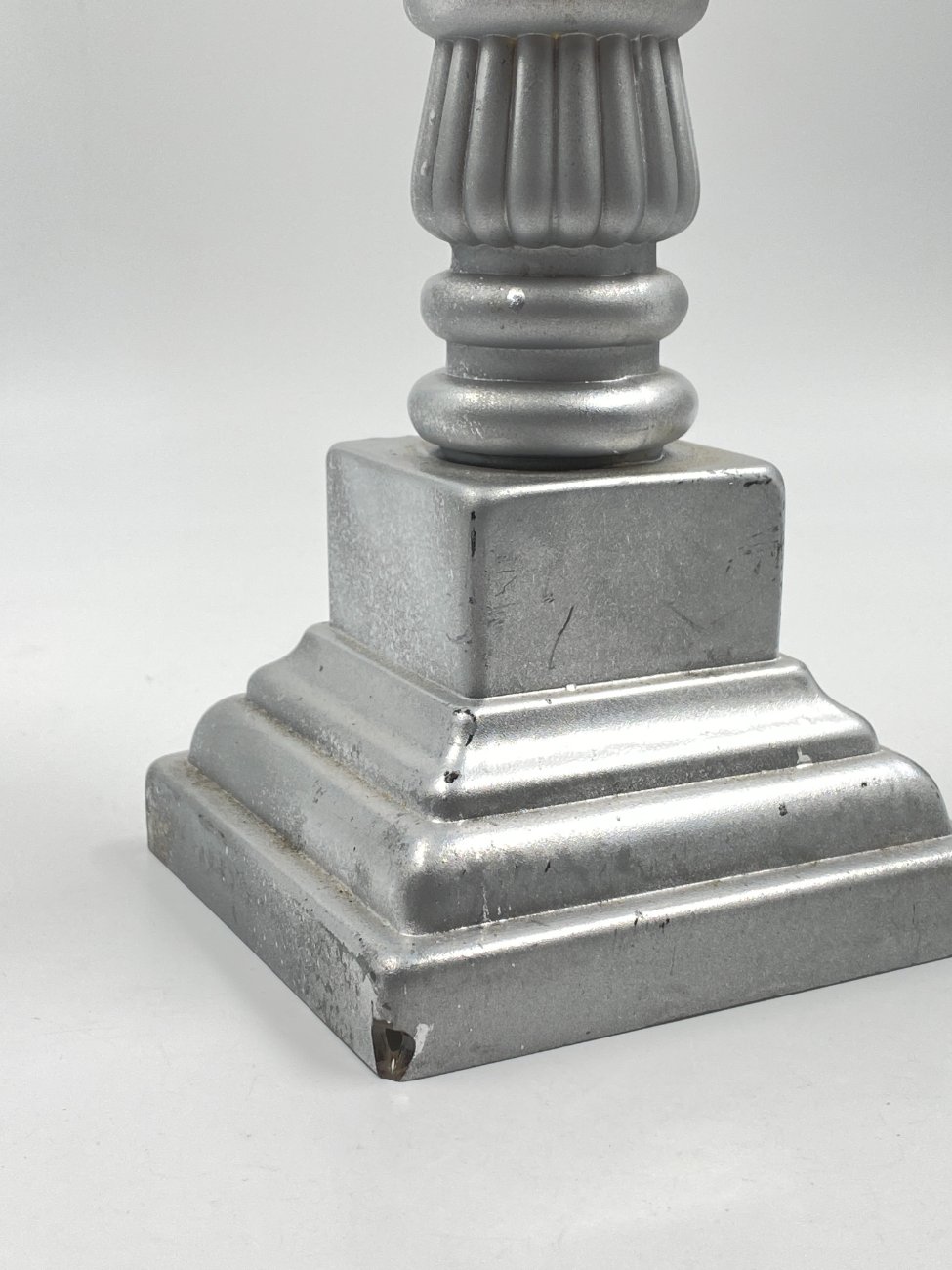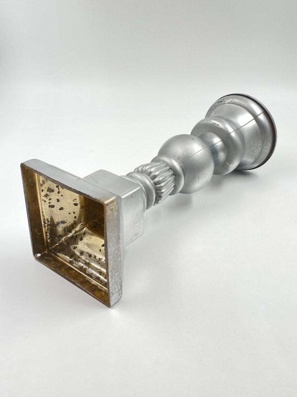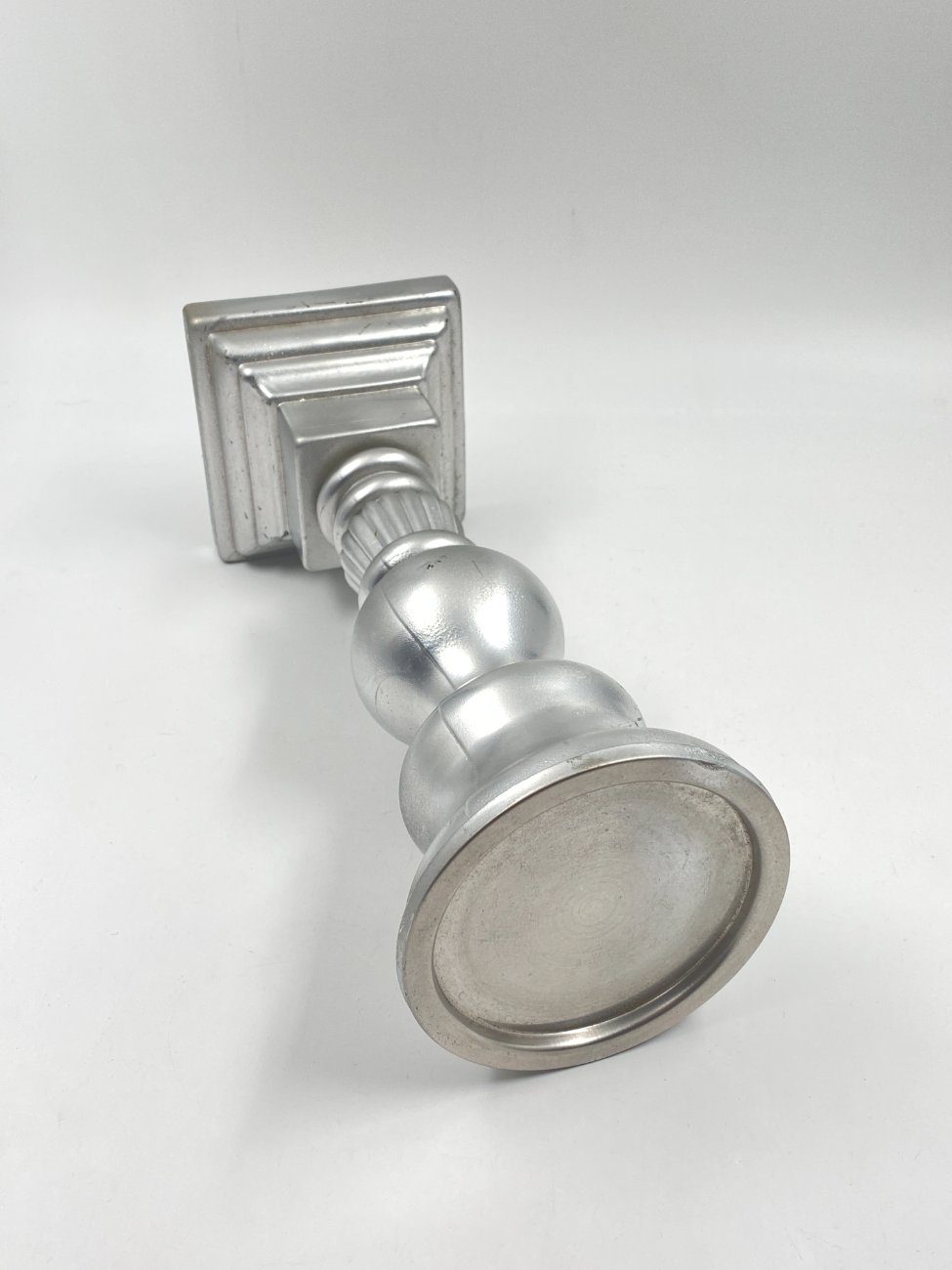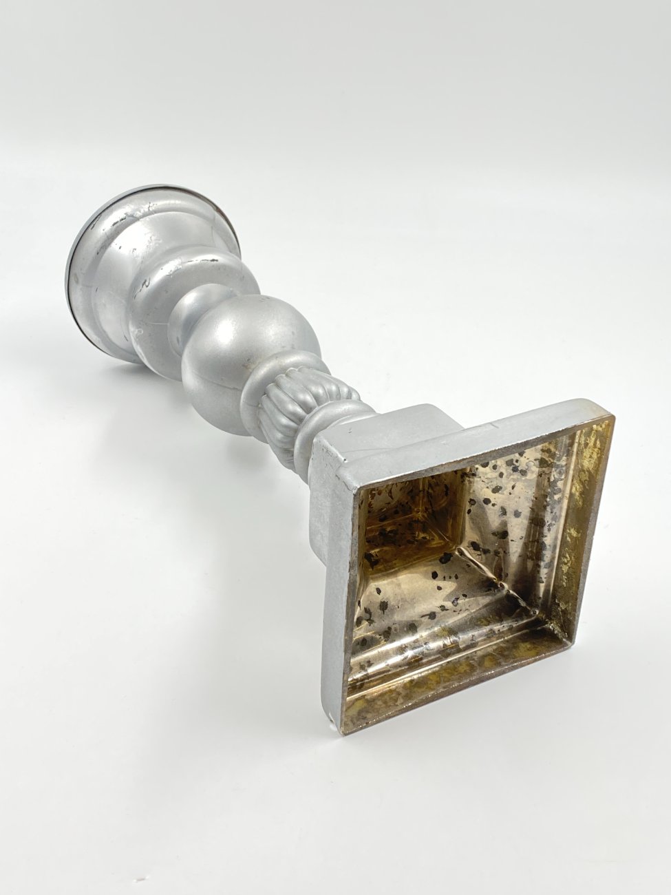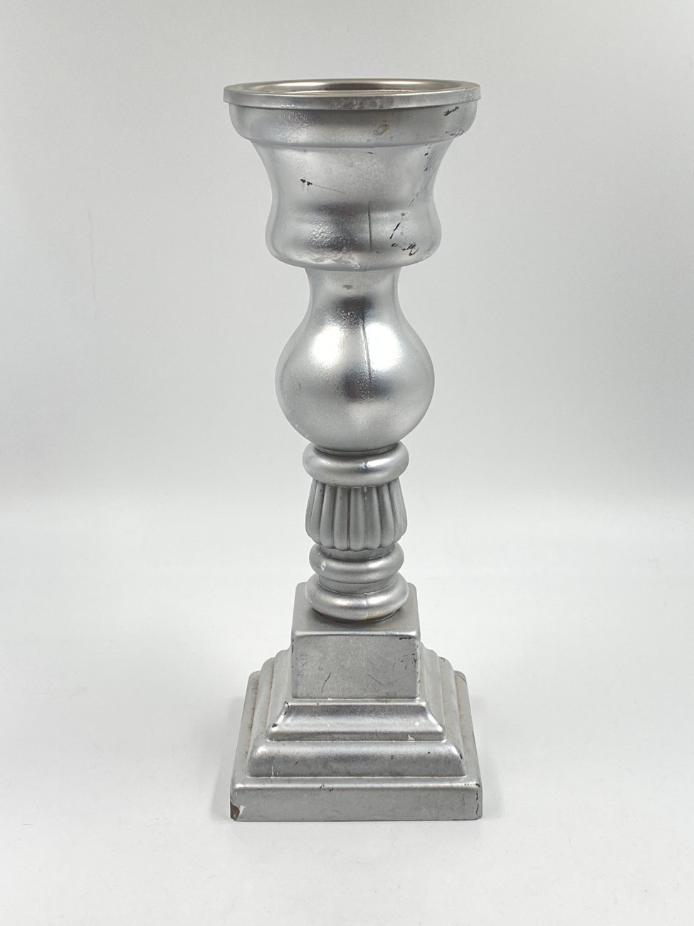 Sidabro spalvos stiklinė žvakidė 13x13x36,5 cm