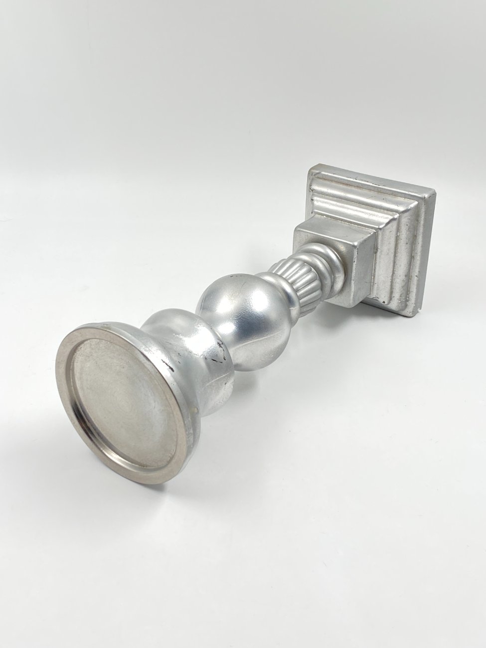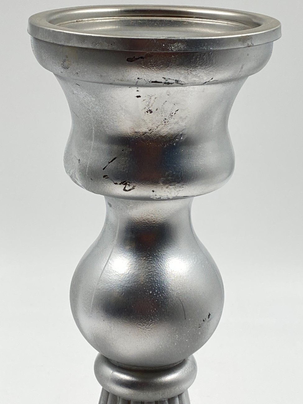 Sidabro spalvos stiklinė žvakidė.