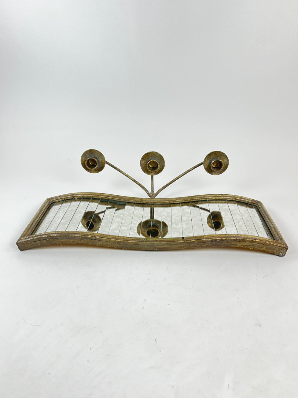Sieninės trijų šakų žvakidės su veidrodžiais 2 vnt. komplektas 13x52x27 cm