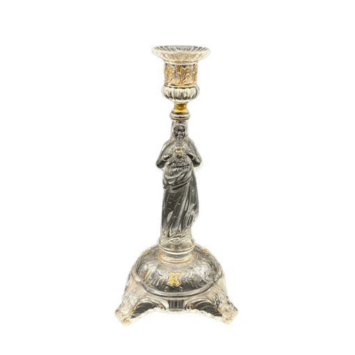 Stiklinė žvakidė su Jėzaus atvaizdu.