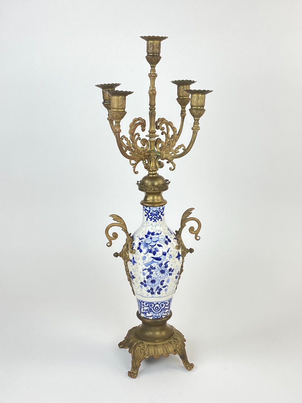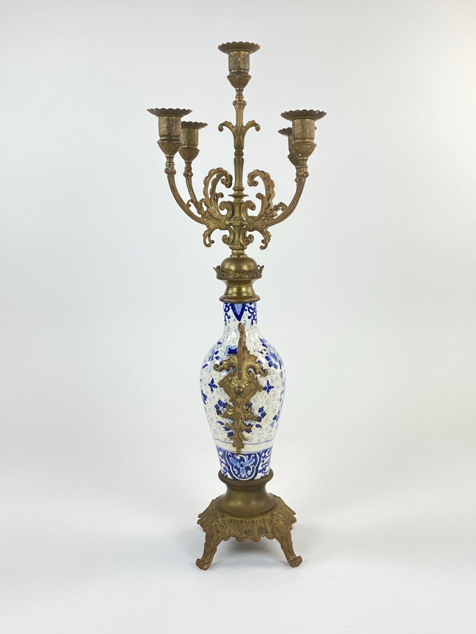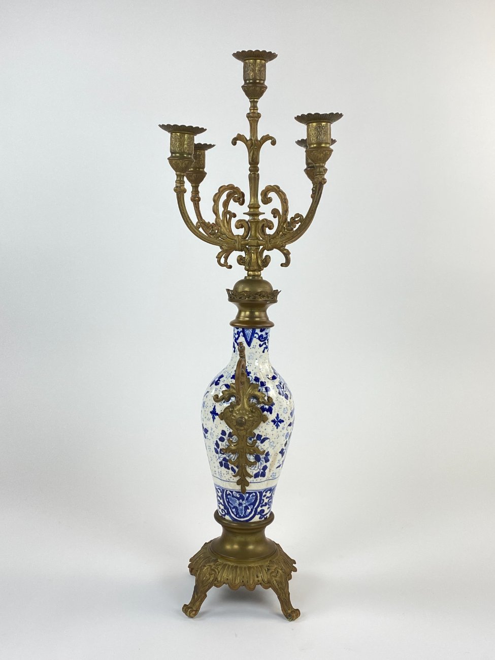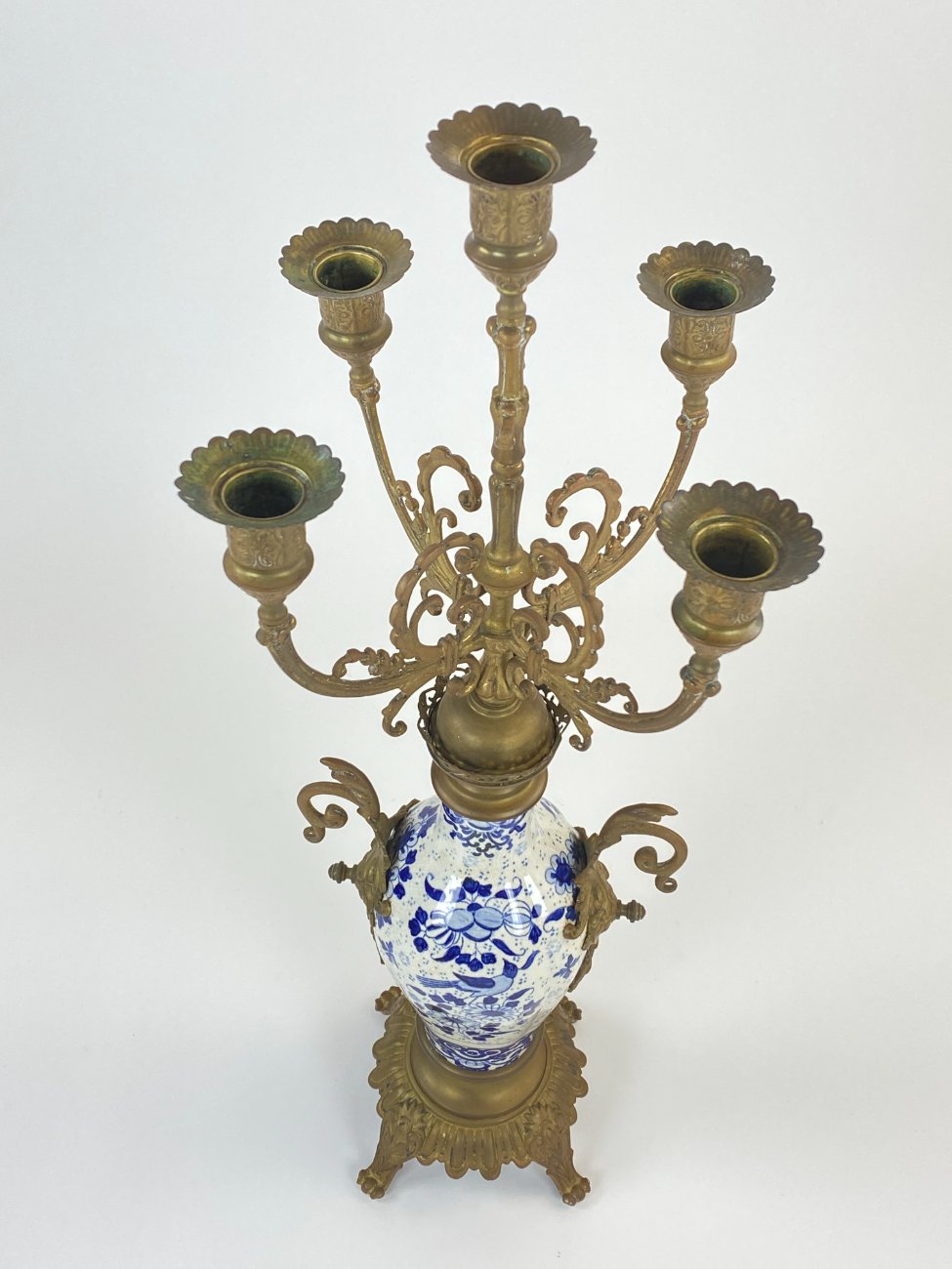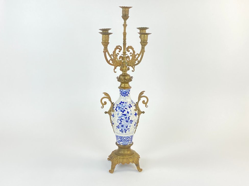 Žalvarinė penkių šakų žvakidė su porcelianu