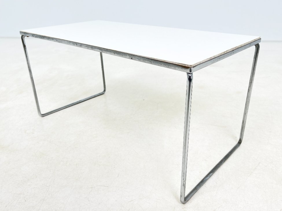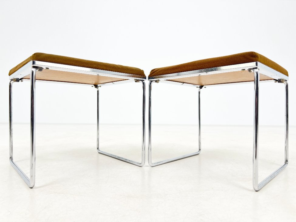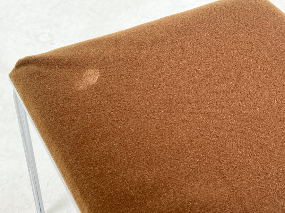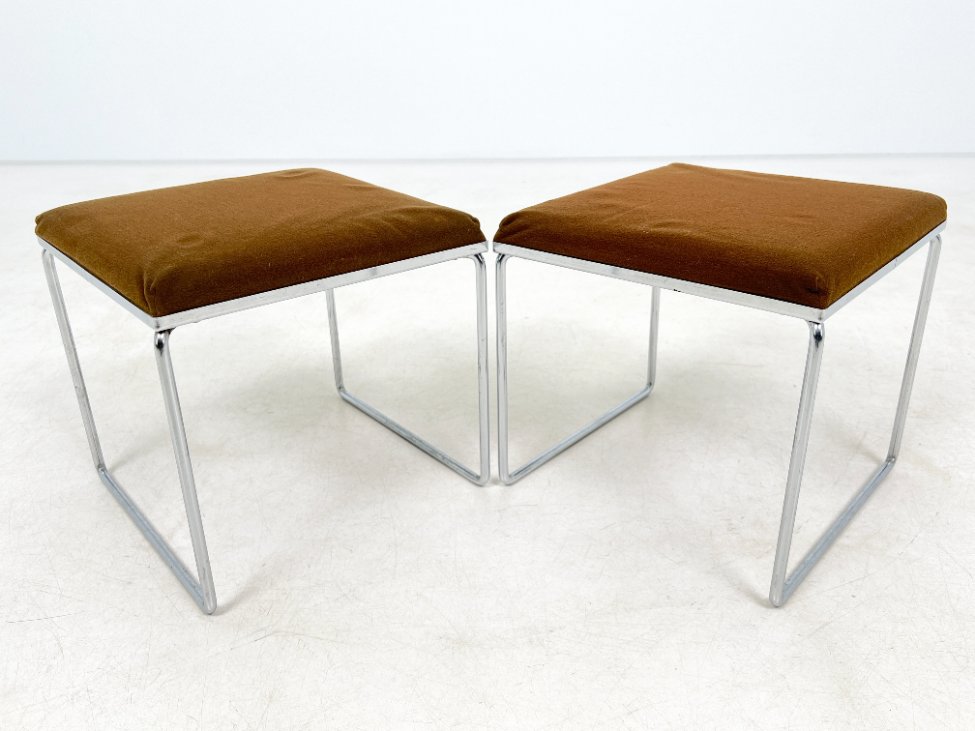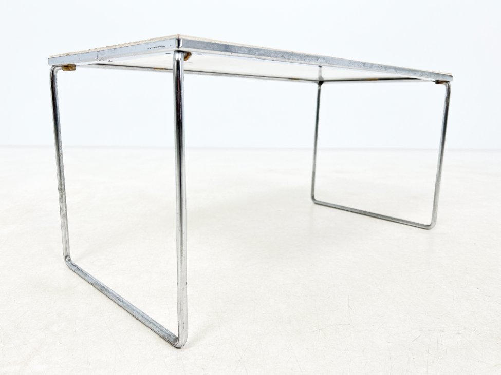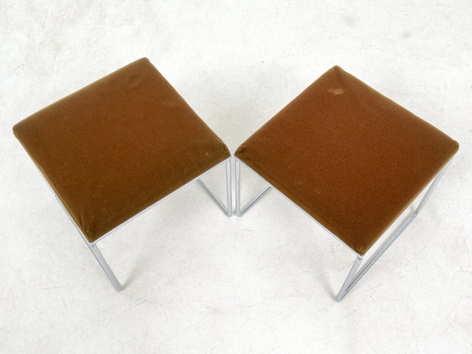 | Papildoma informacija | Ant staliuko ir abiejų pufų metalinių rėmų ir kojų yra pabraižymų, oksidacijos dėmių. Apdaužyti staliuko stalviršio kampai, stalviršis pabraižytas. Abiejų pufų gobelenai turi dėmių. |