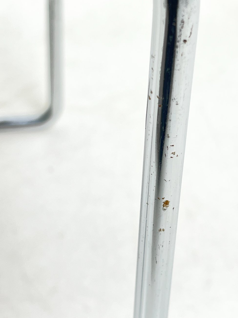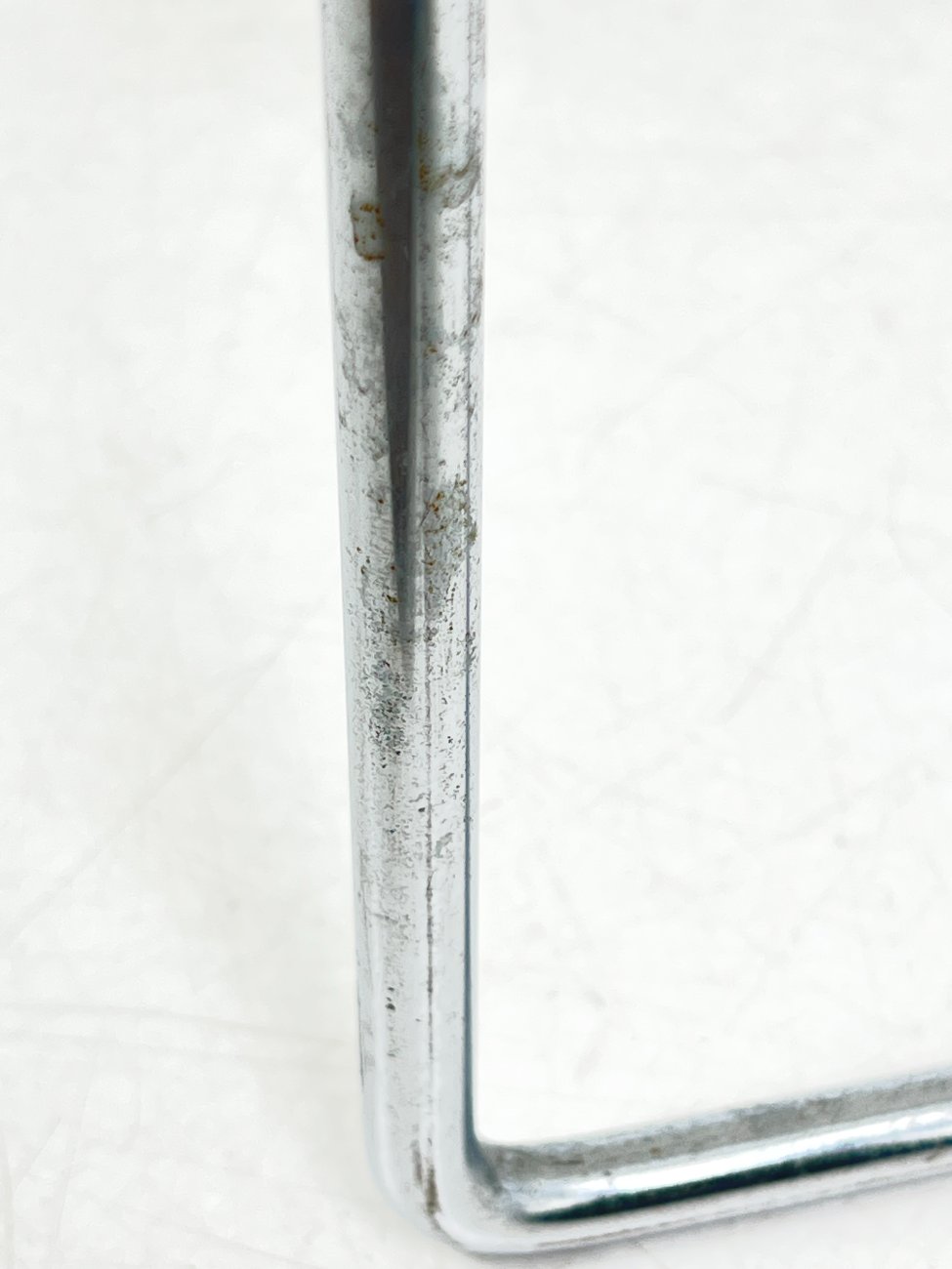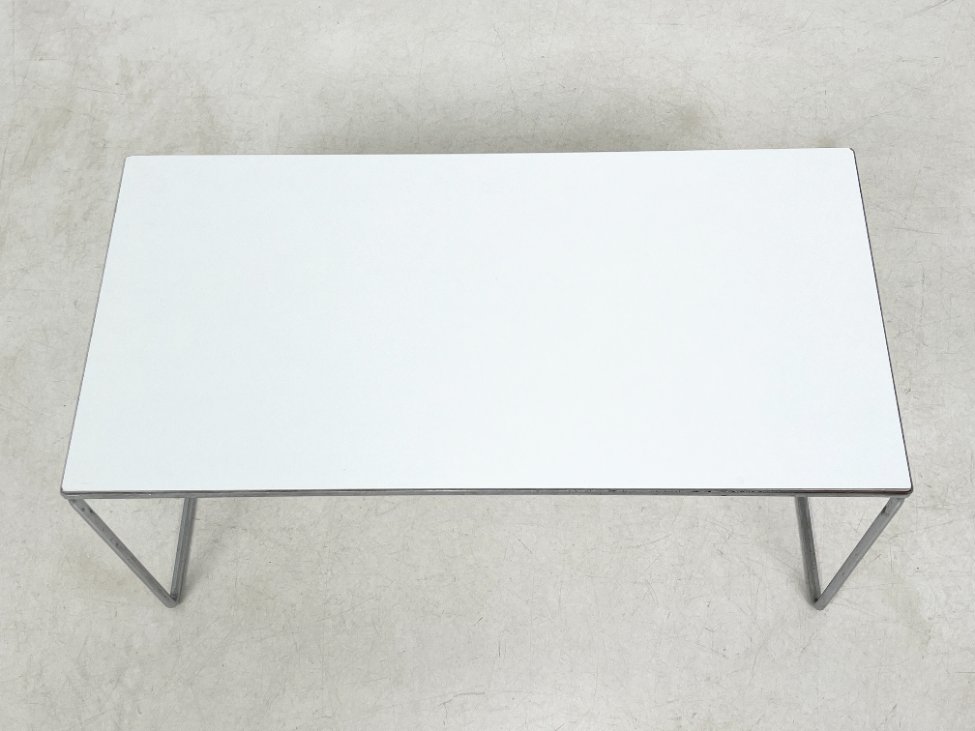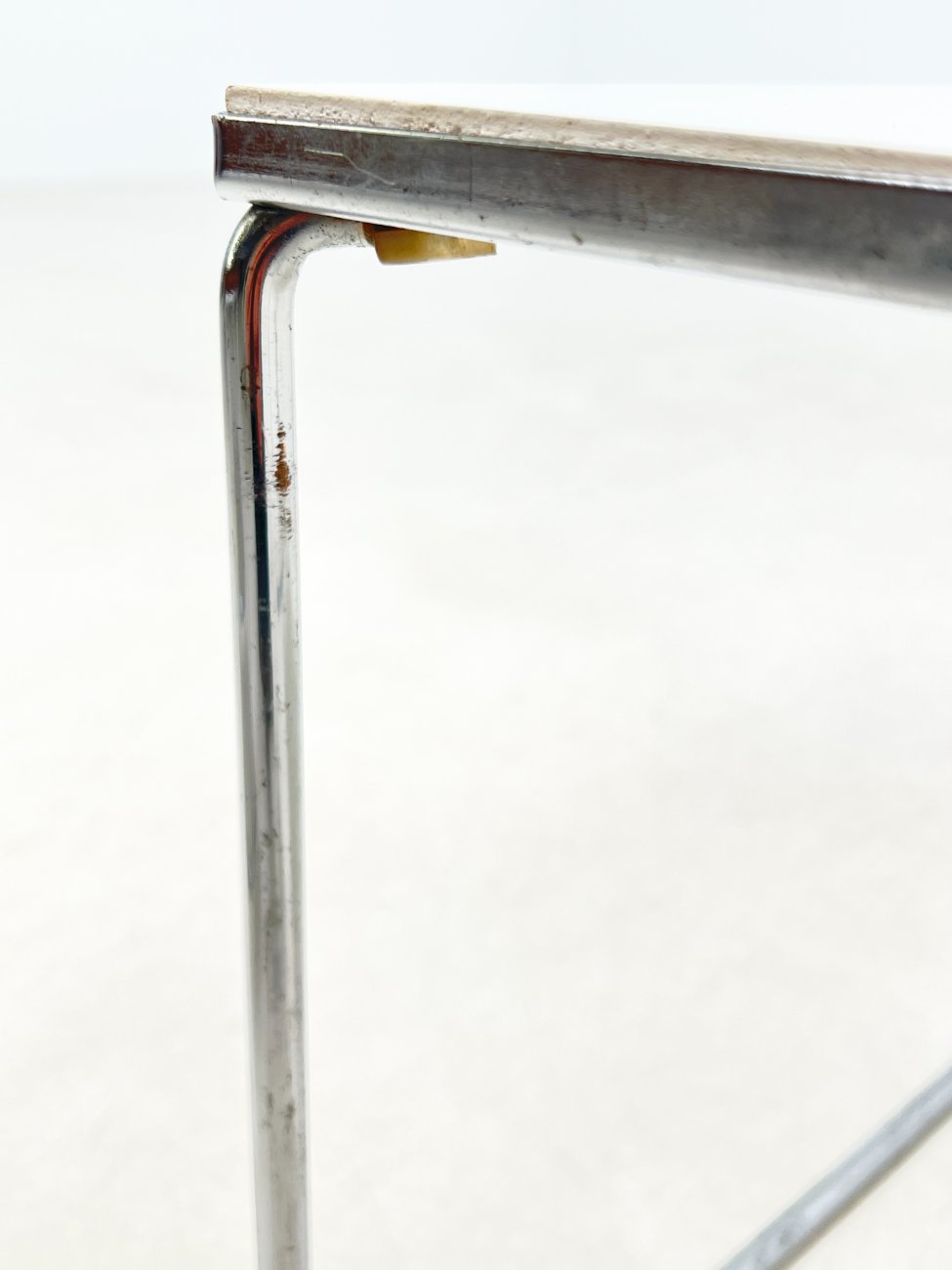 | Papildoma informacija | Ant staliuko ir abiejų pufų metalinių rėmų ir kojų yra pabraižymų, oksidacijos dėmių. Apdaužyti staliuko stalviršio kampai, stalviršis pabraižytas. Abiejų pufų gobelenai turi dėmių. |