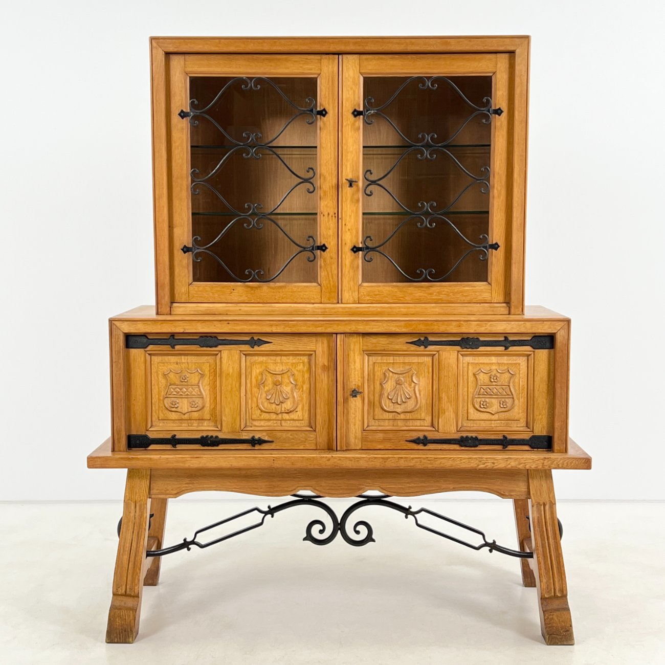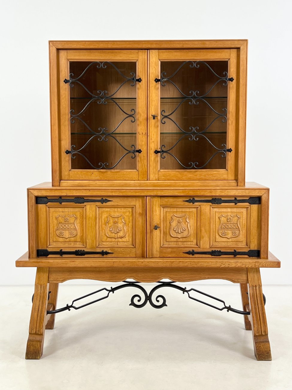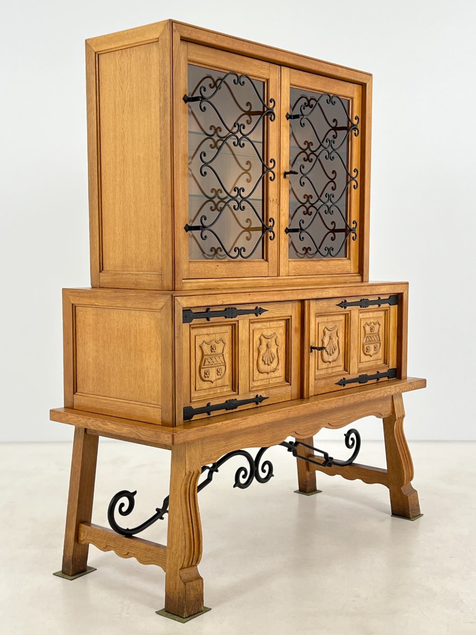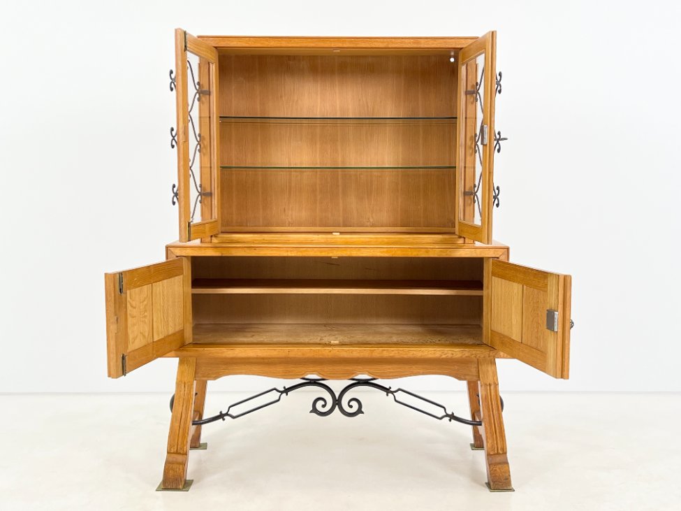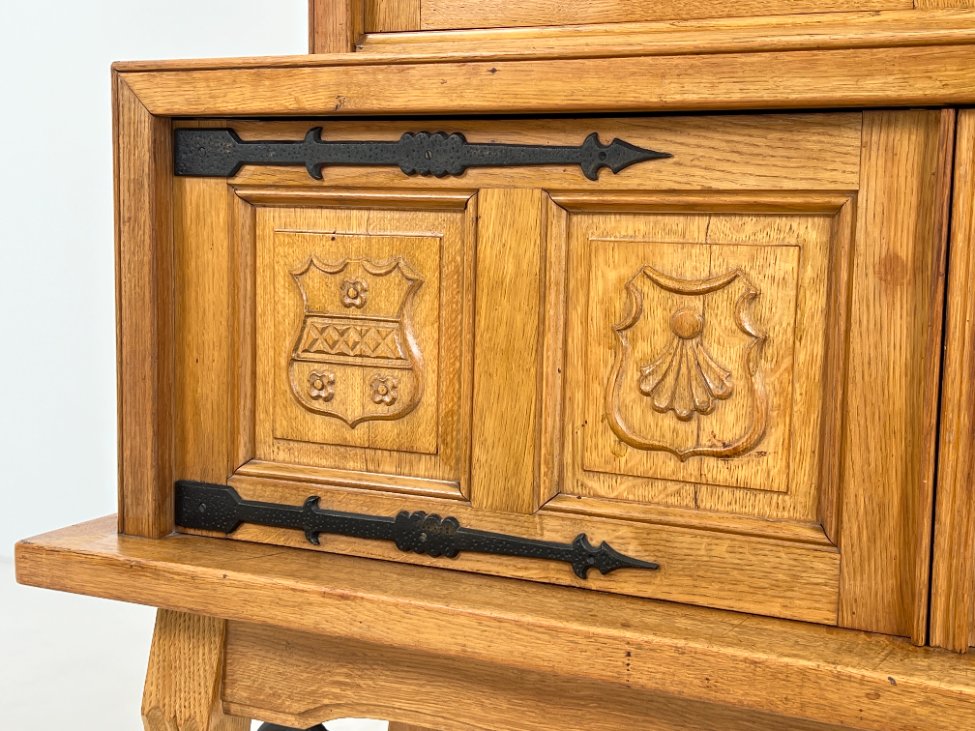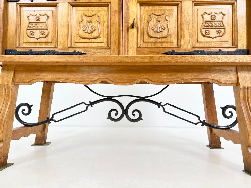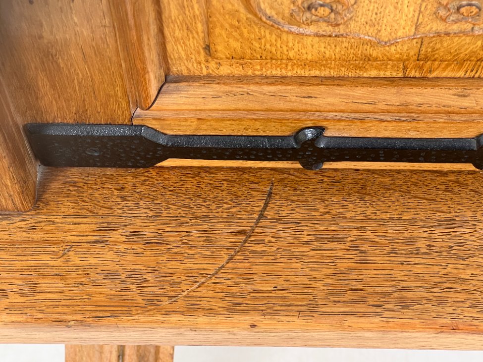 Ąžuolinis bufetas su kalvio darbo metalinėmis apdailomis.
