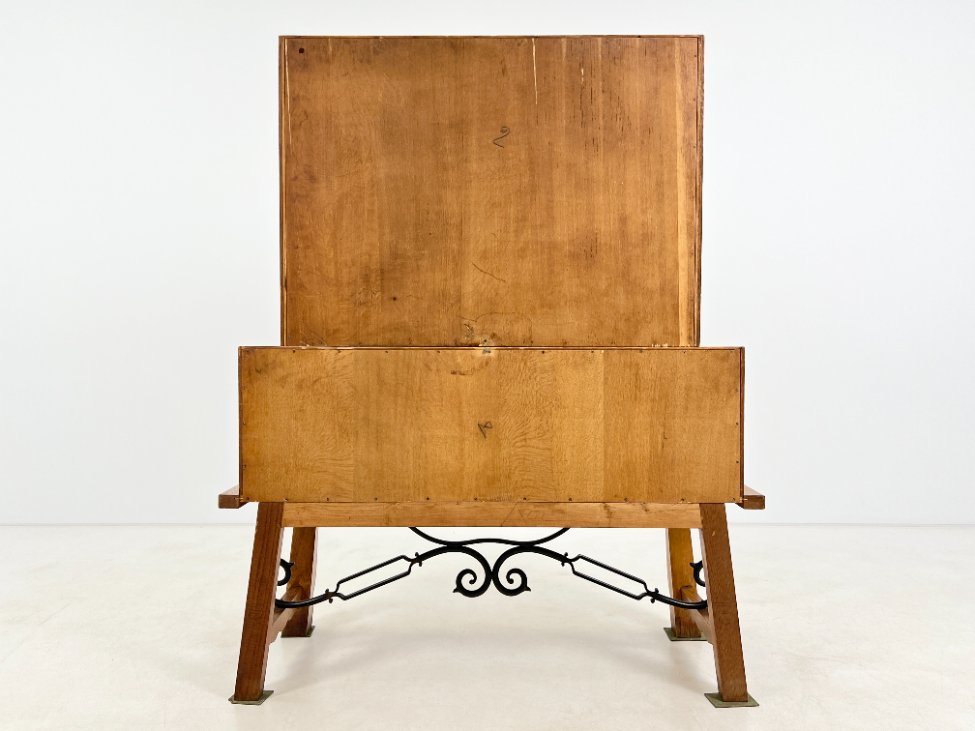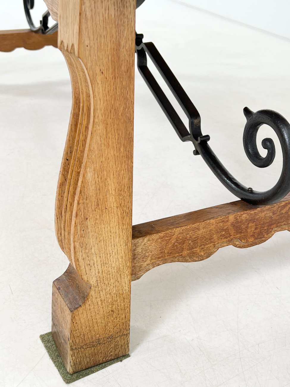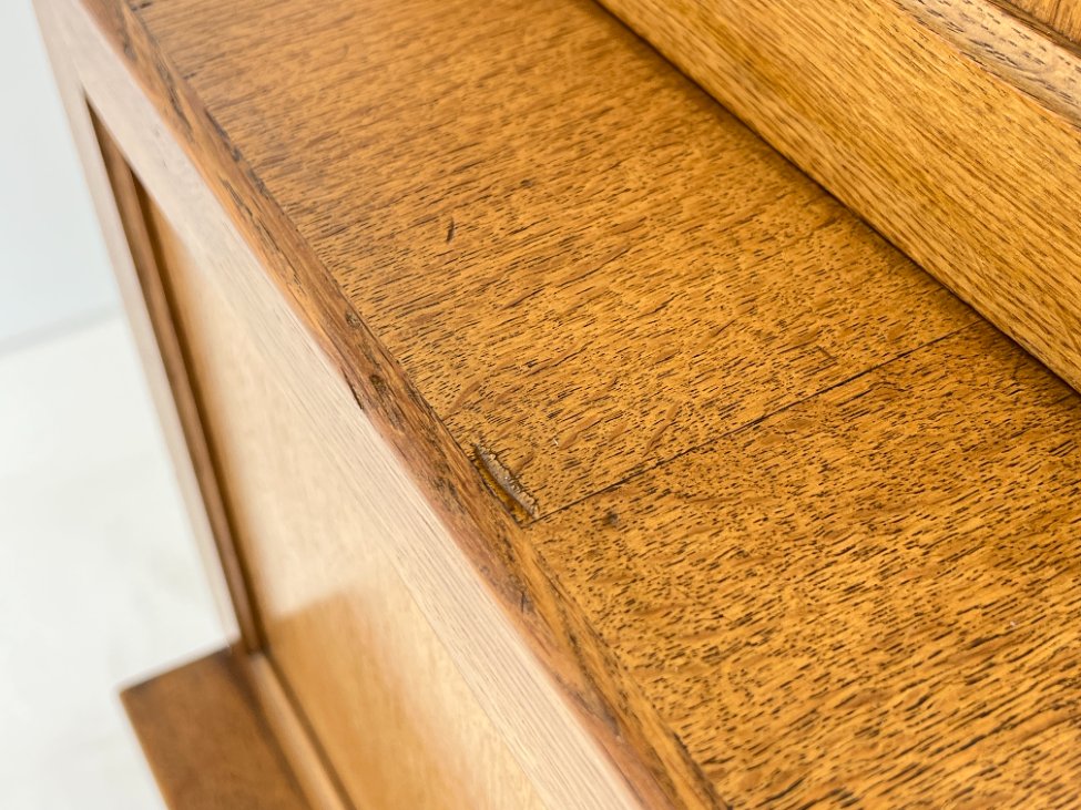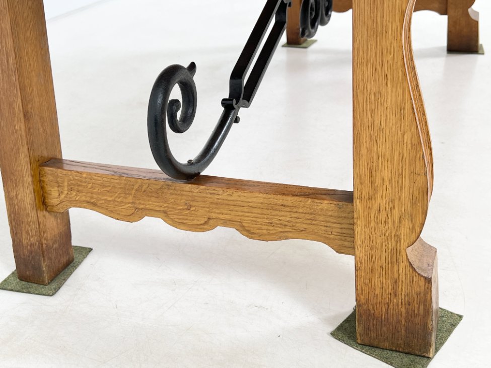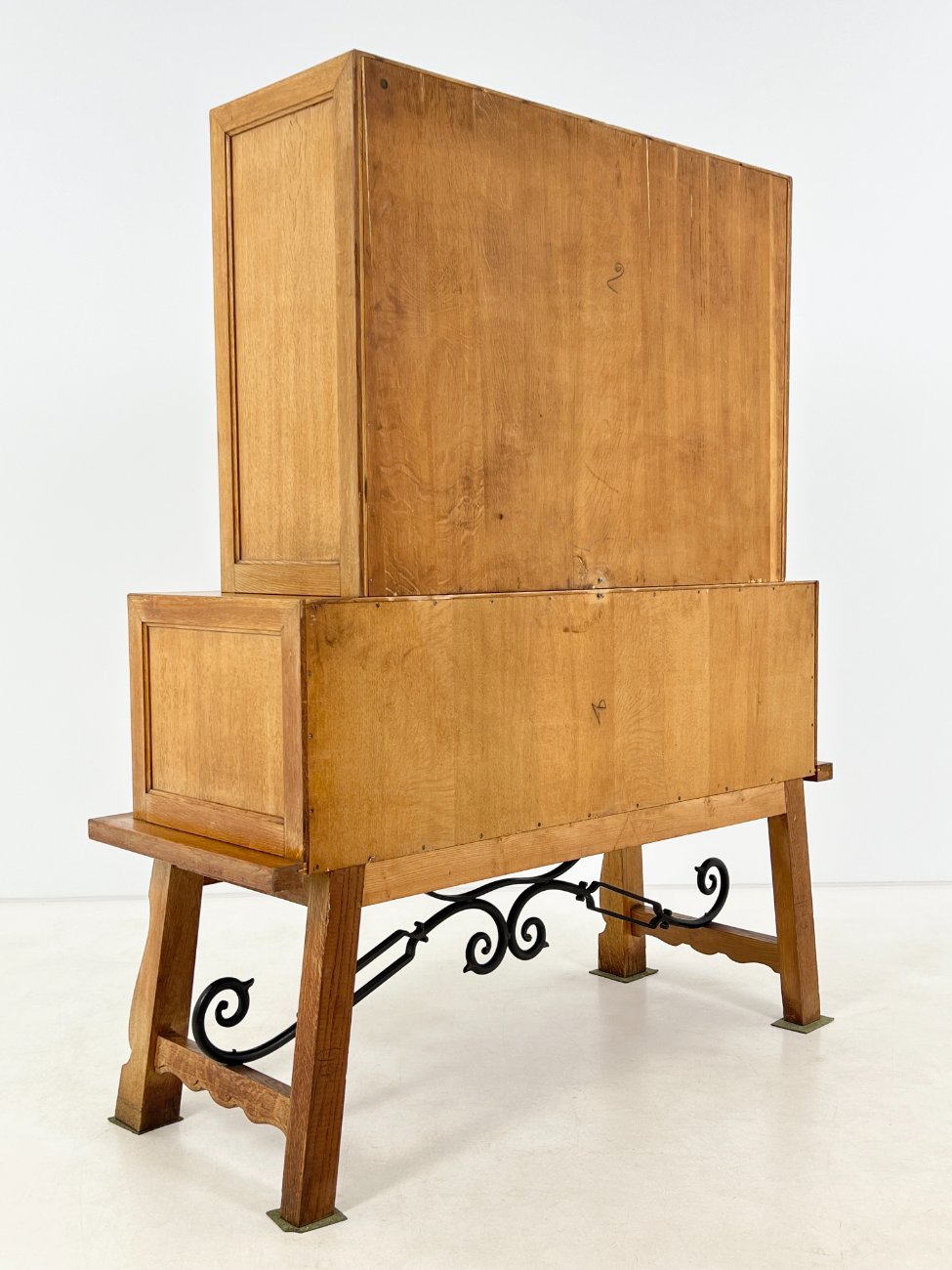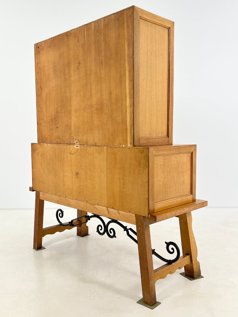 Ąžuolinis bufetas su kalvio darbo metalinėmis apdailomis.