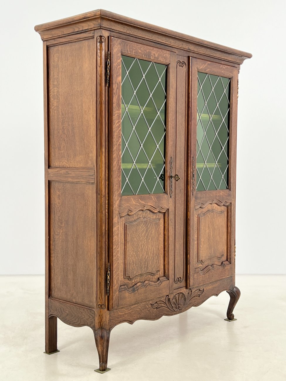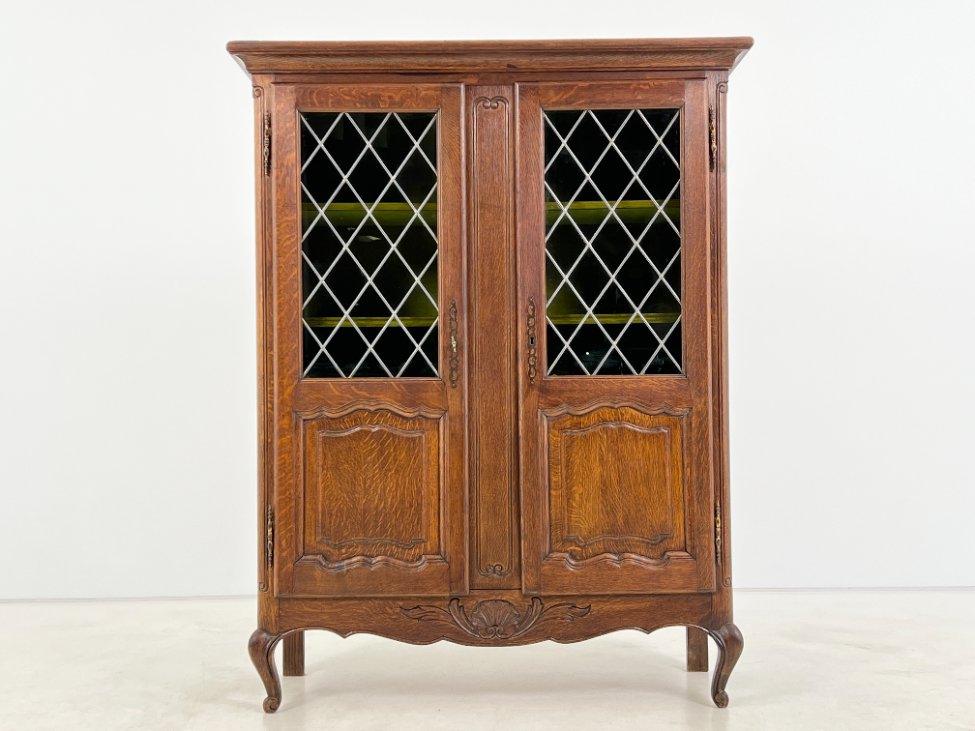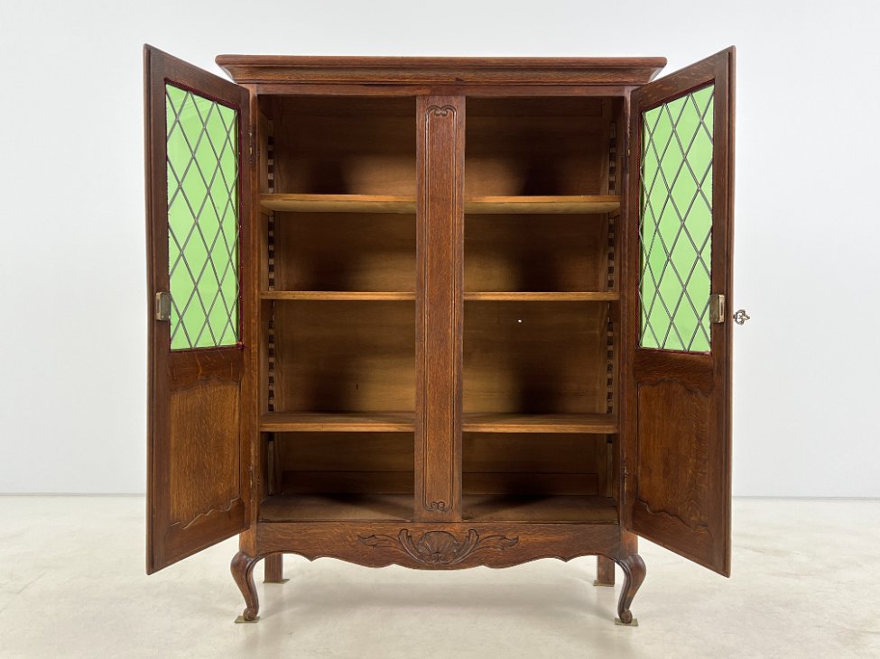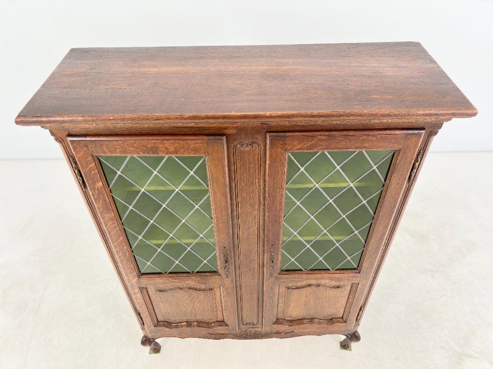 Ąžuolinis bufetas su žalio stiklo durimis 39,5x109x139,5 cm