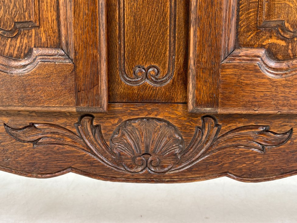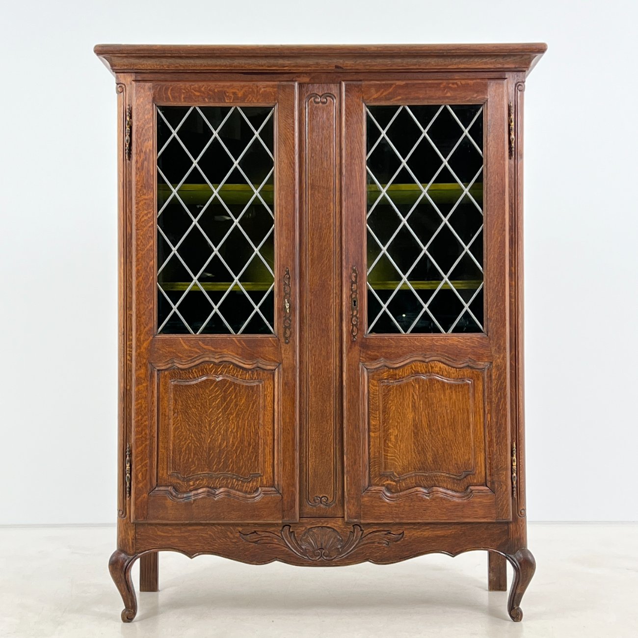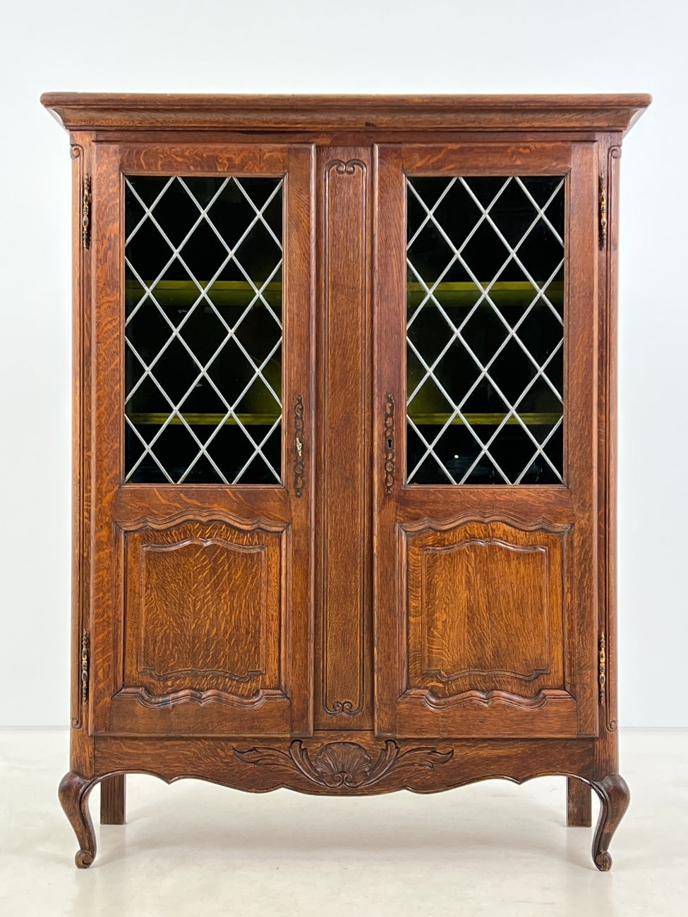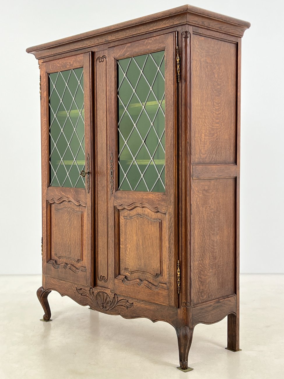 Ąžuolinis bufetas su žalio stiklo durimis 39,5x109x139,5 cm