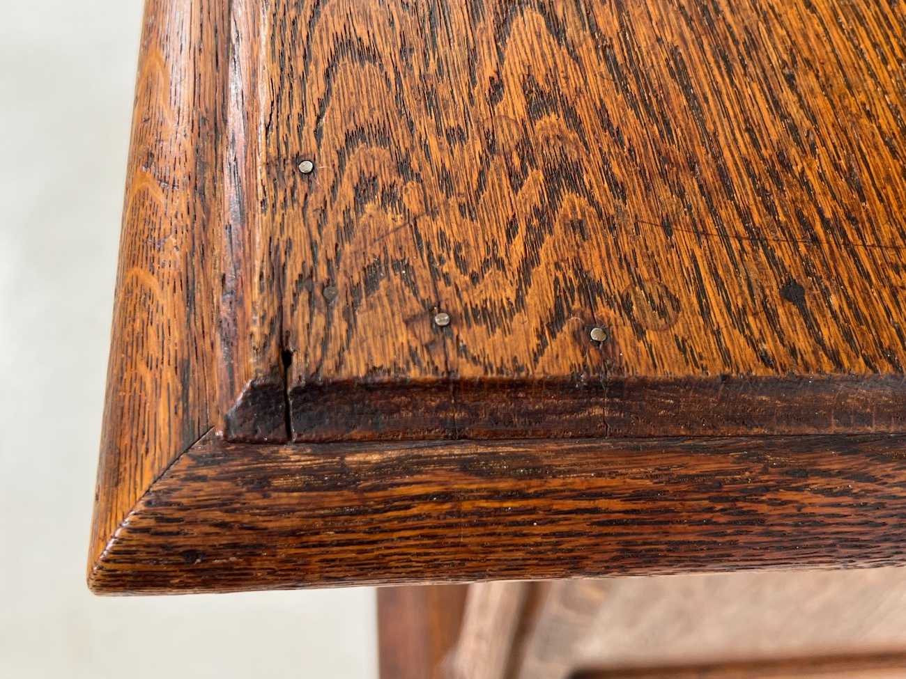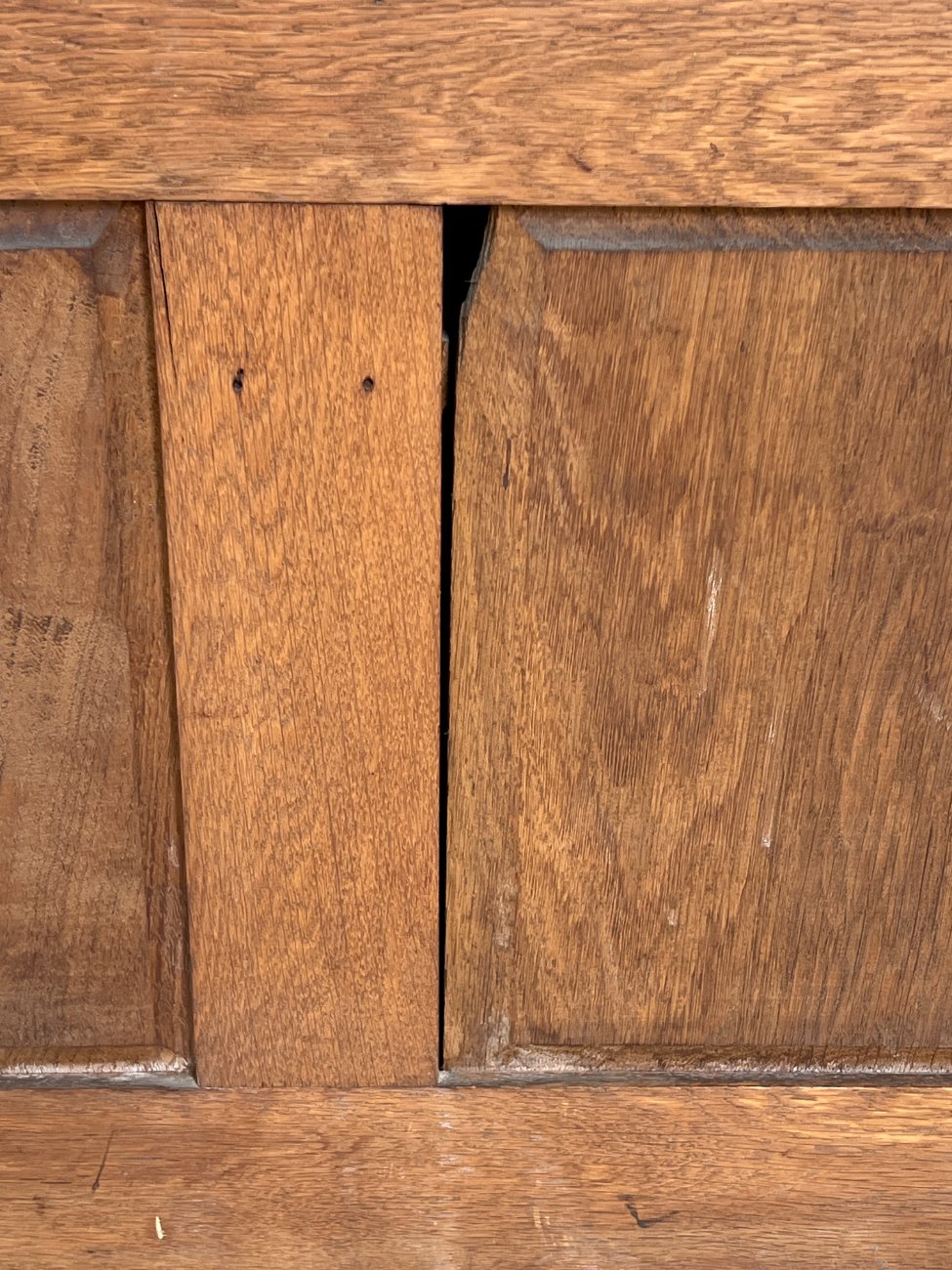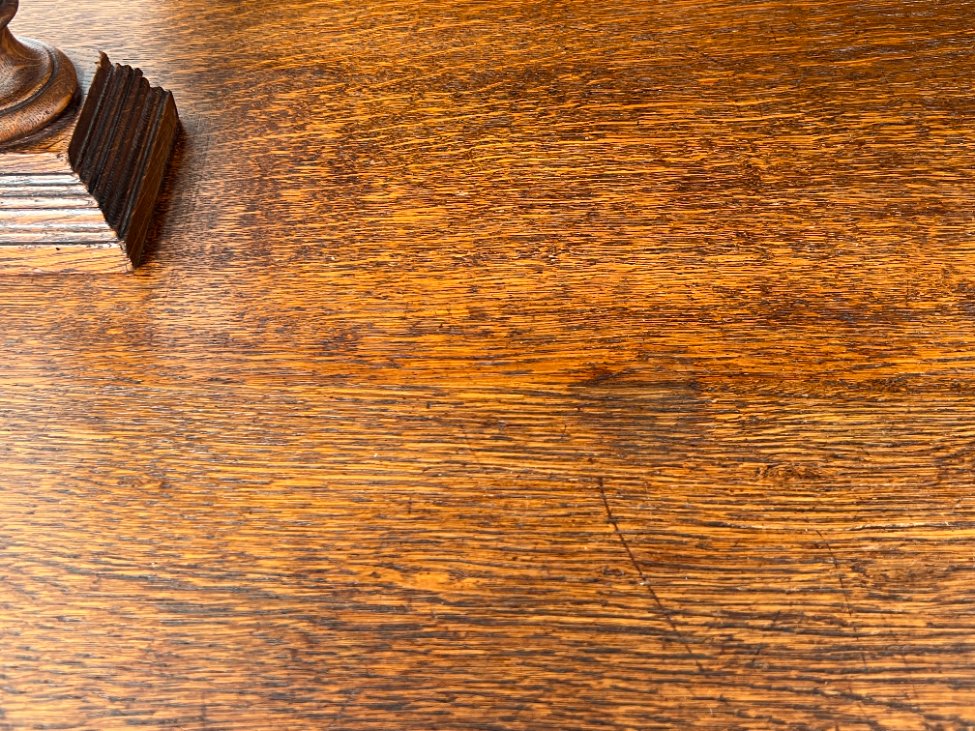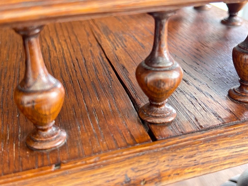 | Papildoma informacija | Ant lentynėlių vietomis trūksta šoninių apdailos detalių. Nugaroje įskilusios dvi lentos. Per visą paviršių yra pabraižymų, įmušimų, dėmių ir medienos įskilimų. |