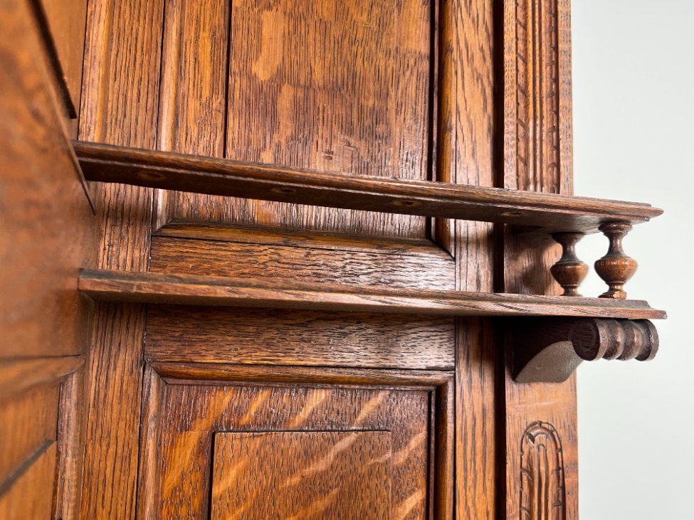 Ąžuolinis drožinėtas dviejų dalių bufetas 59,5×118,5×224,5 cm