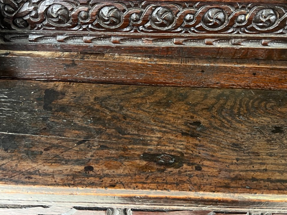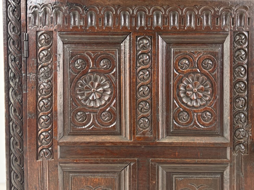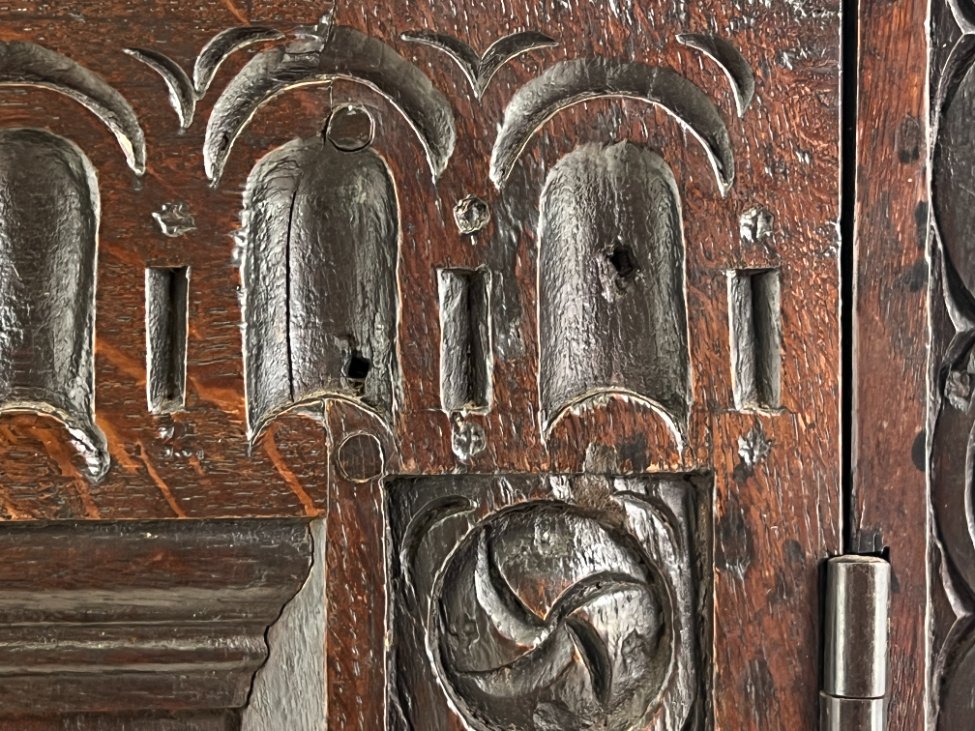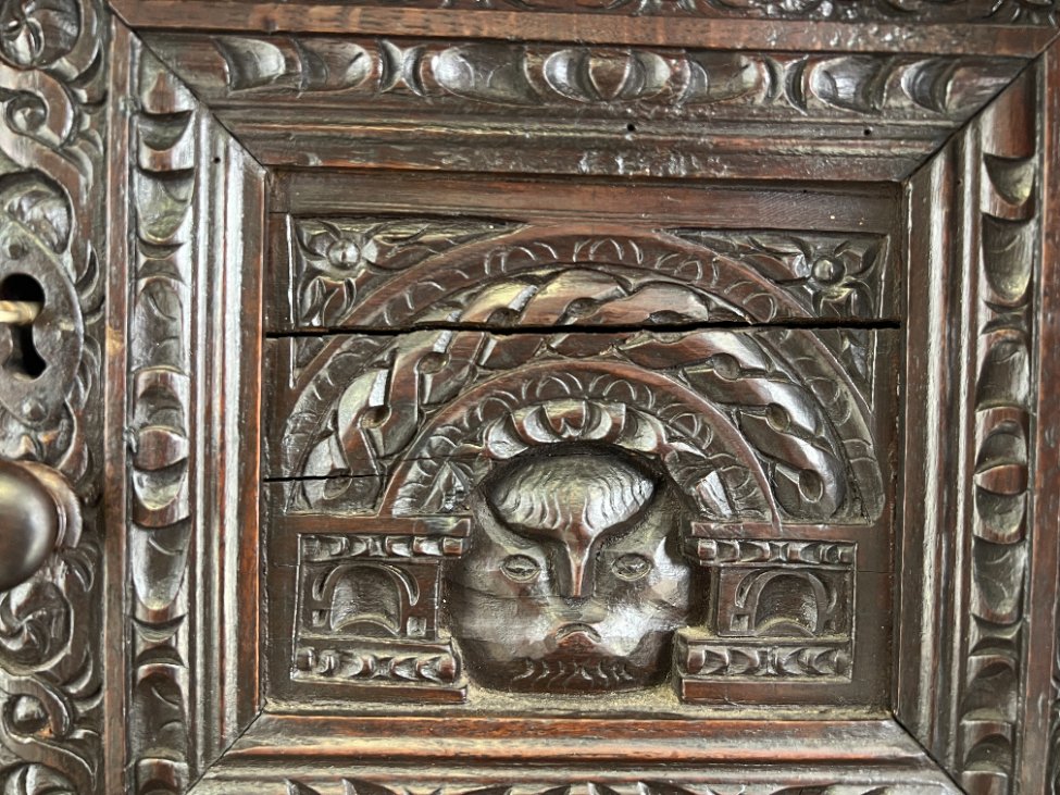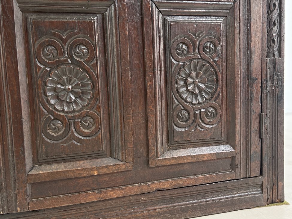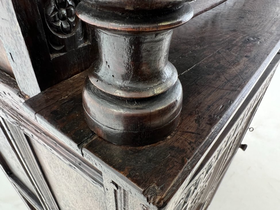 Ąžuolinis drožinėtas XIX a. pradžios bufetas 70x156x176 cm