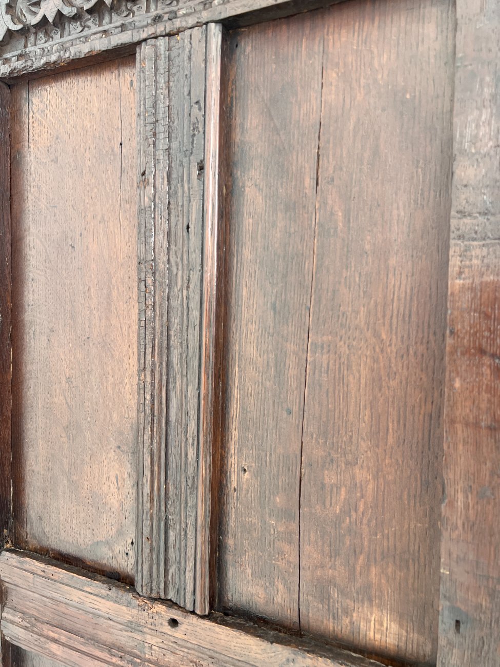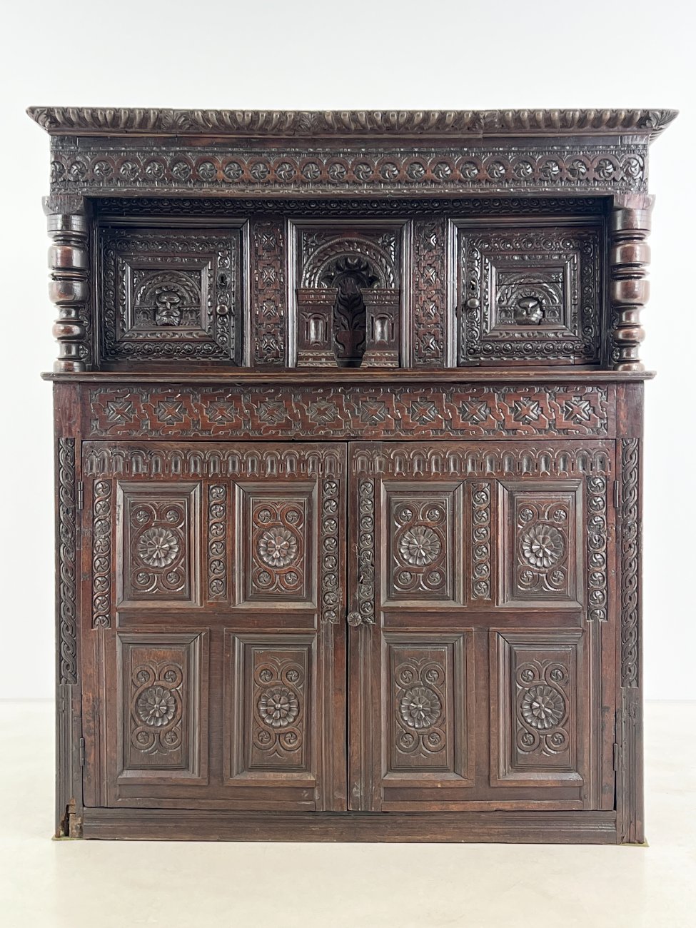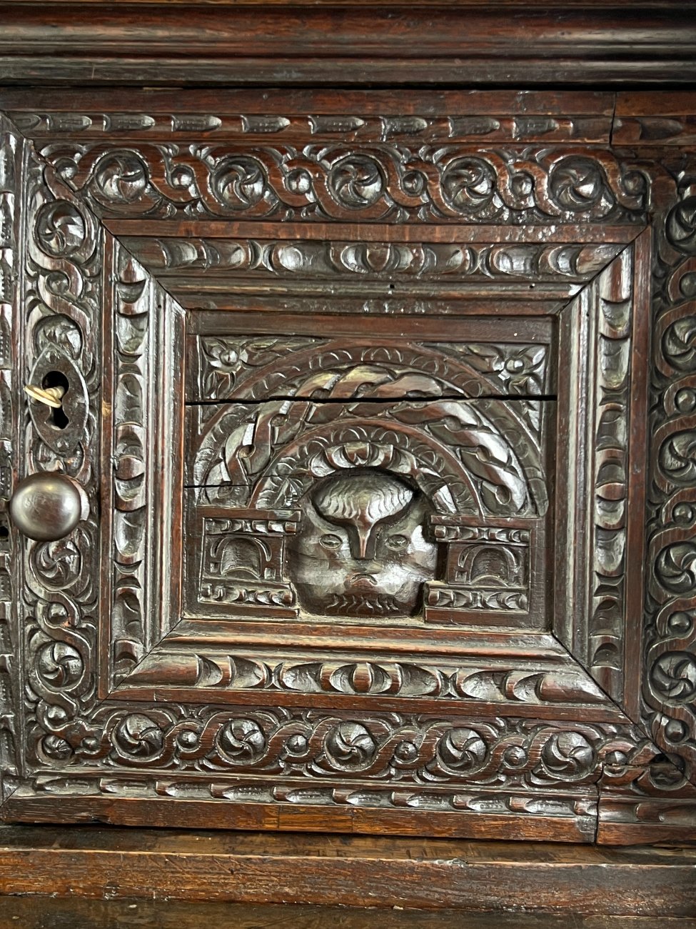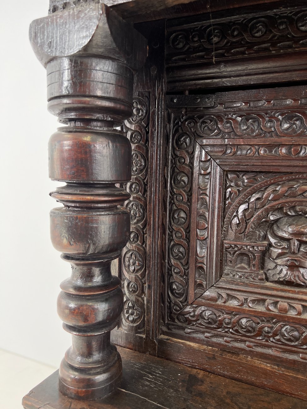 Ąžuolinis drožinėtas XIX a. pradžios bufetas 70x156x176 cm