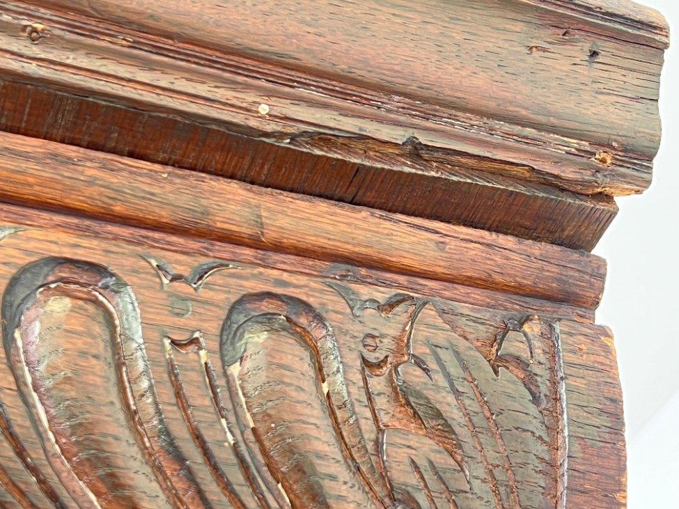 | Papildoma informacija | Matomos naudojimo ir amžiaus žymės, vietomis yra įmušimų, pabraižymų, medienos skilimų ir apdaužymų. Yra kinivarpų pažeidimų. |
