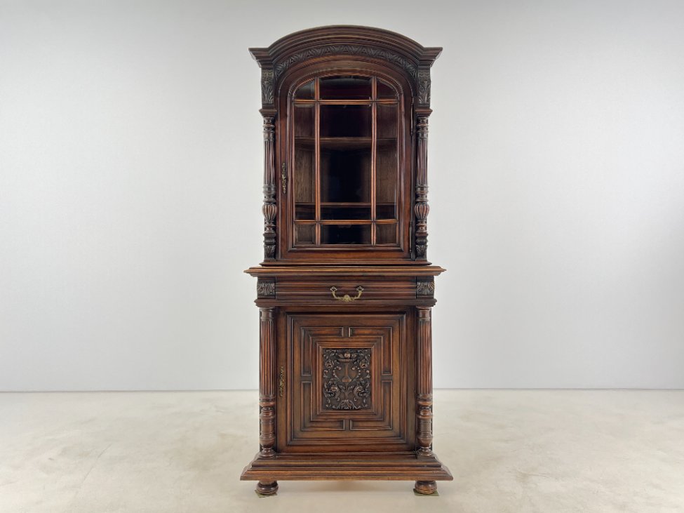 Kampinis drožinėtas riešutmedžio bufetas 55x94x209,5 cm