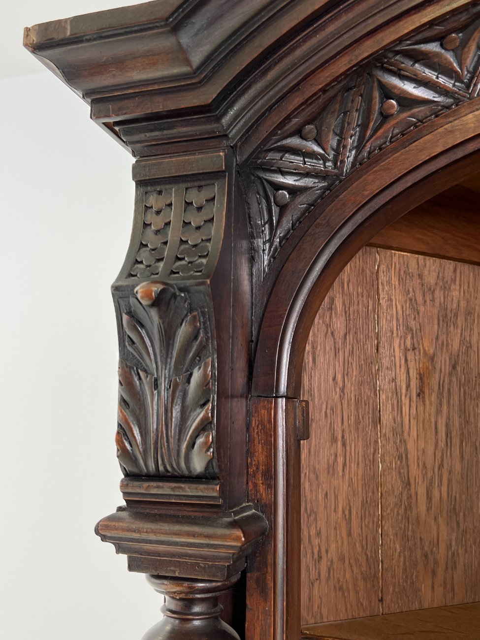 Kampinis drožinėtas riešutmedžio bufetas.