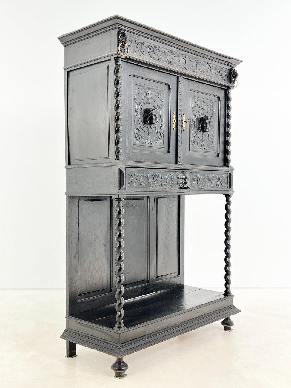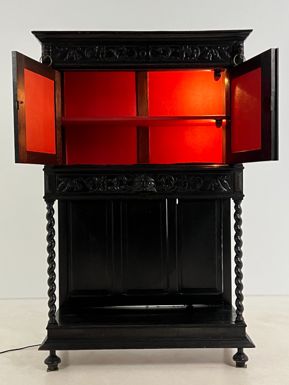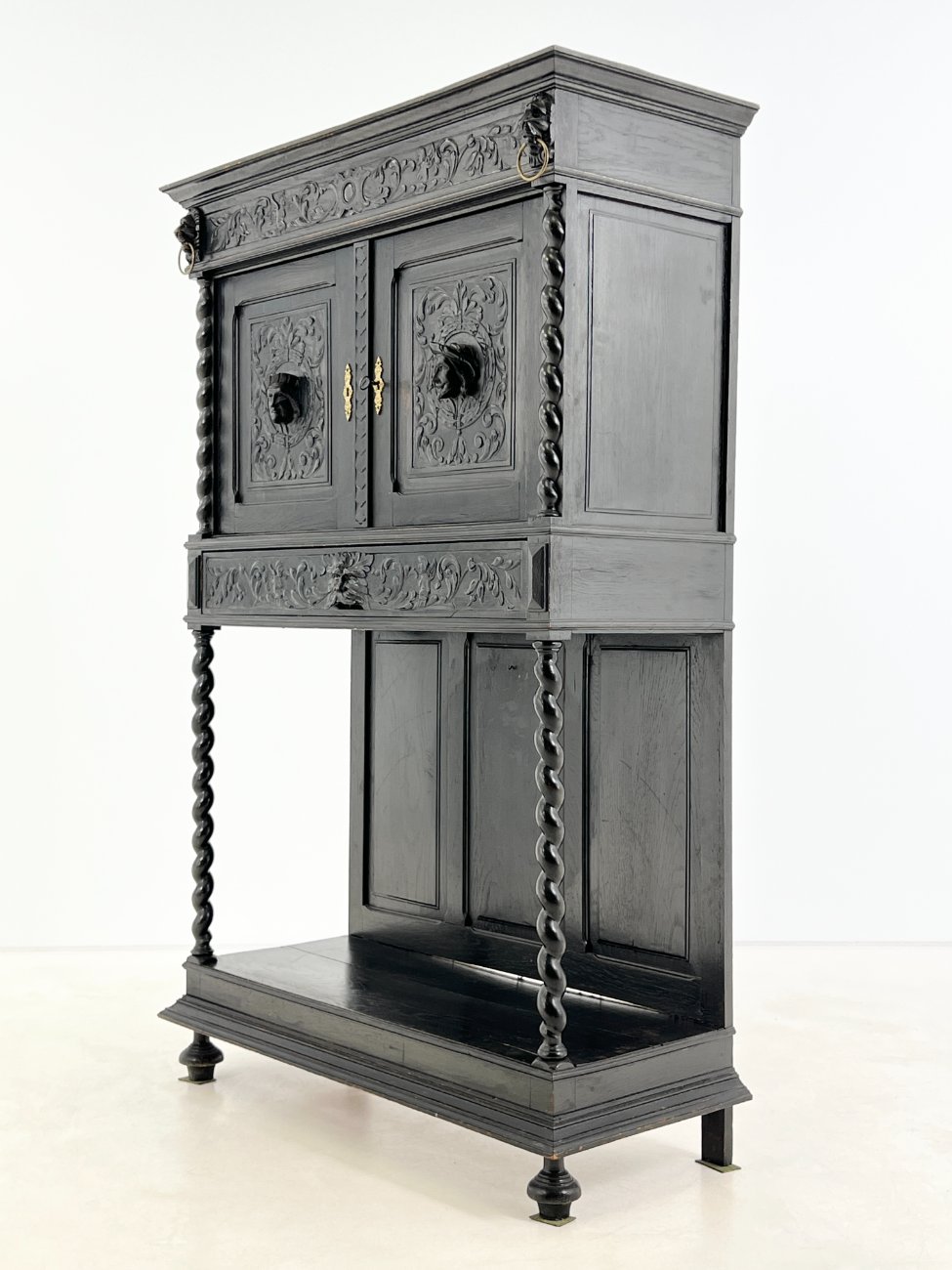 Liudviko XIII laikotarpio stiliaus ąžuolinis bufetas su apšvietimu.