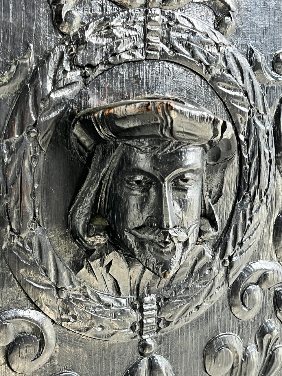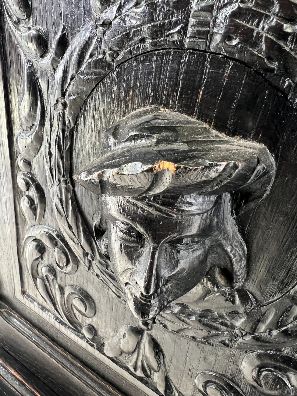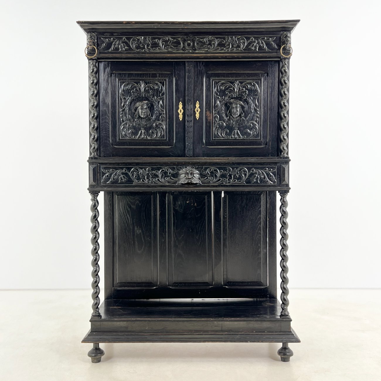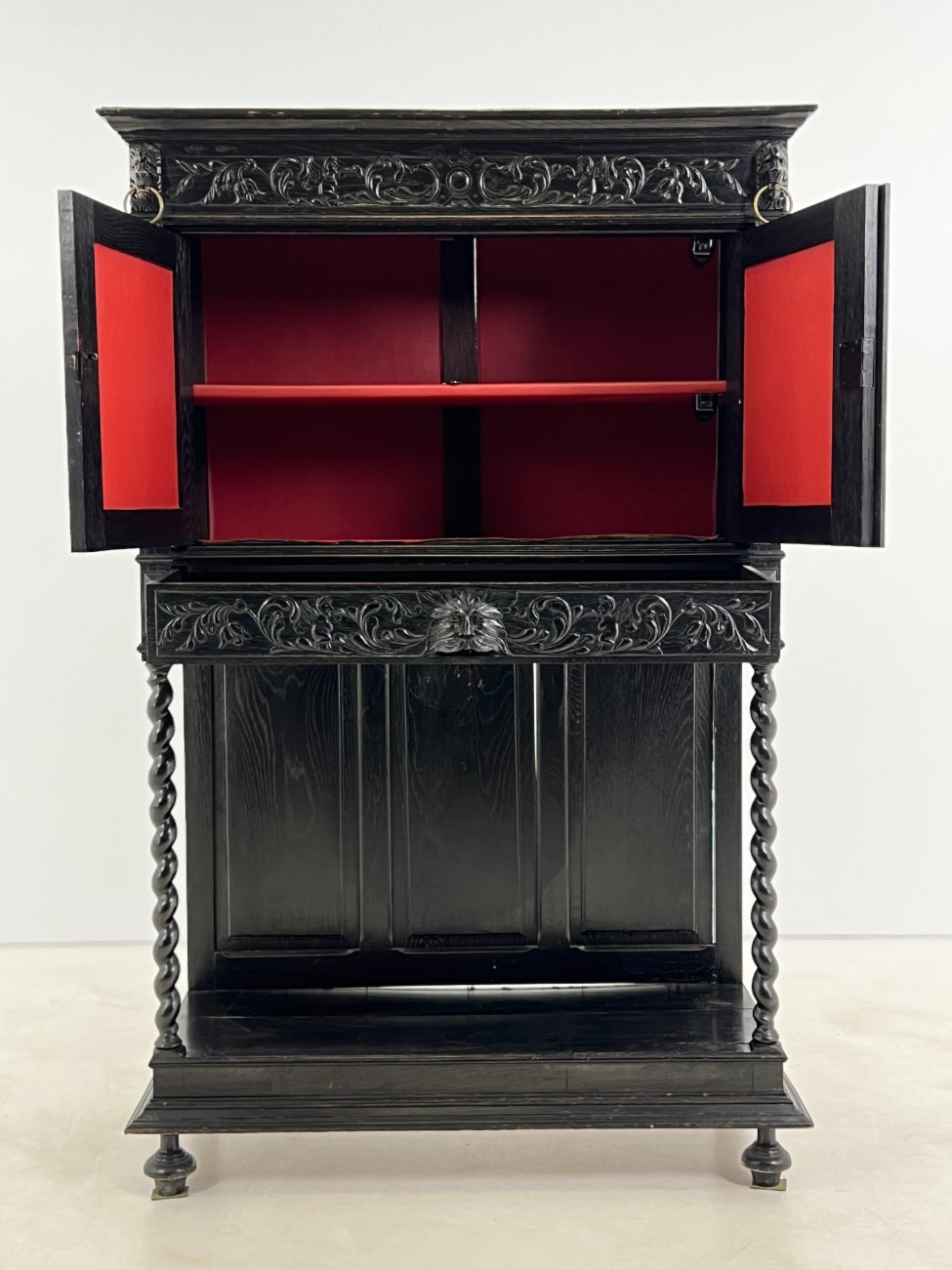 Liudviko XIII laikotarpio stiliaus ąžuolinis bufetas su apšvietimu.
