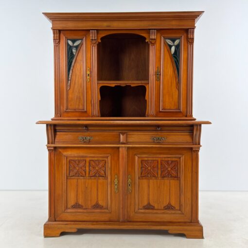 Raudonmedžio bufetas su vitražais viršutinėse durelėse.