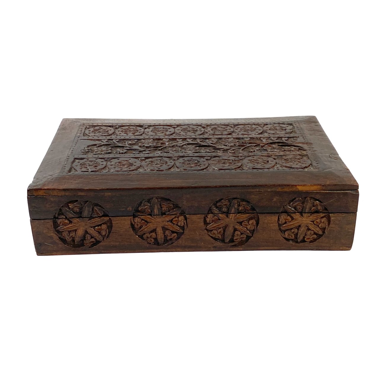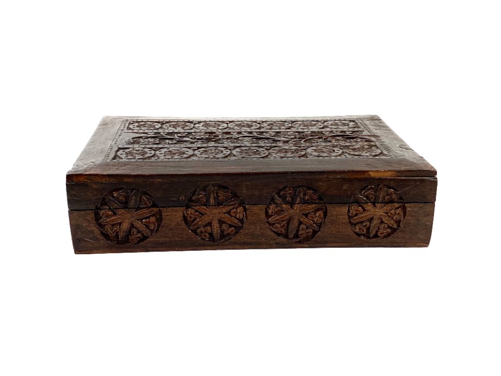 Augalų motyvais drožinėta medinė dėžutė 18×28,5×6,5 cm