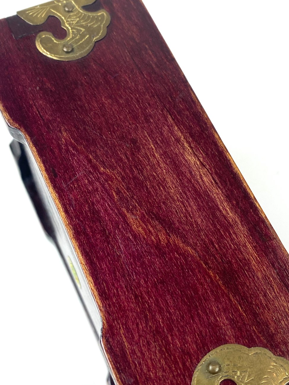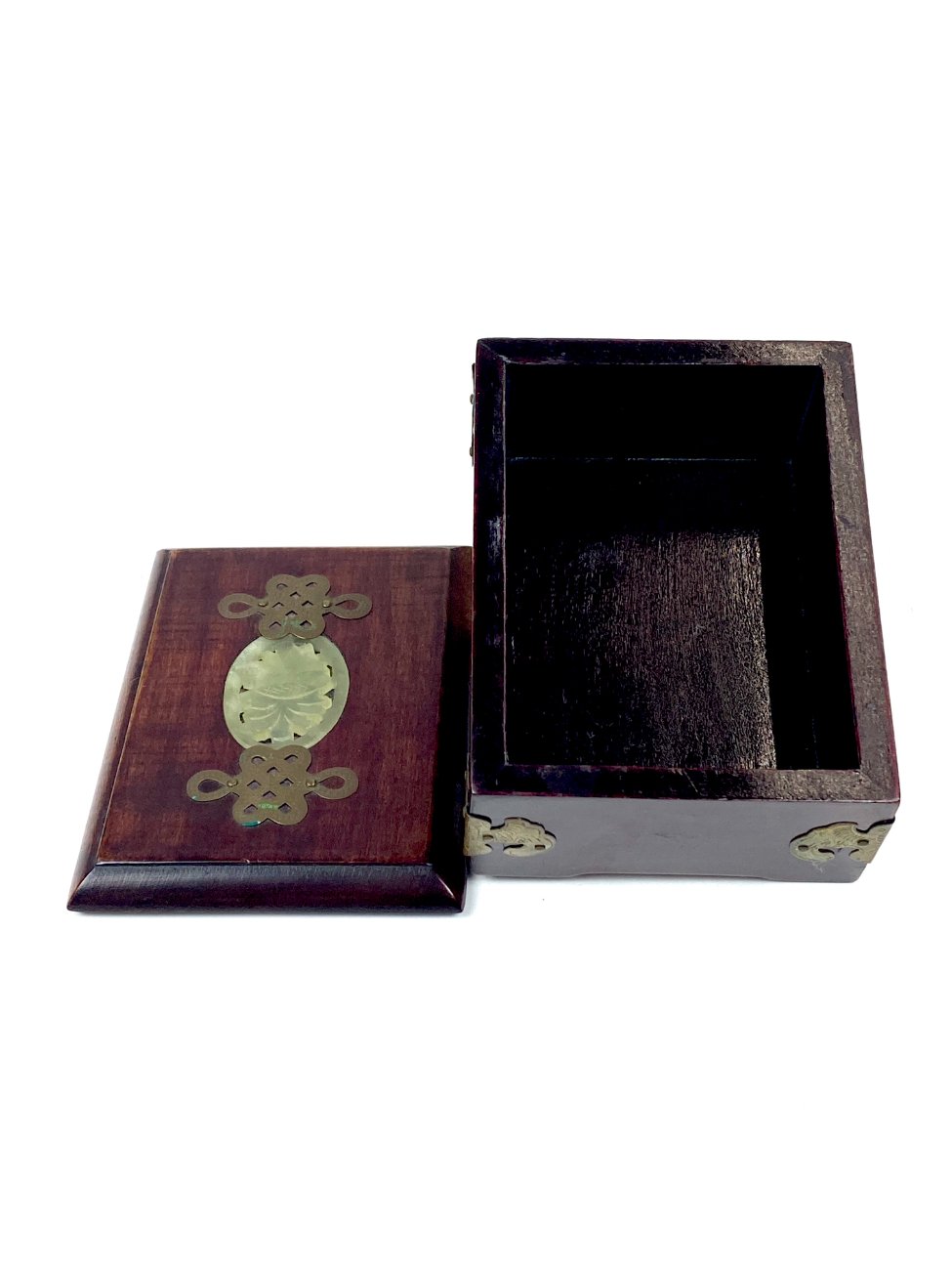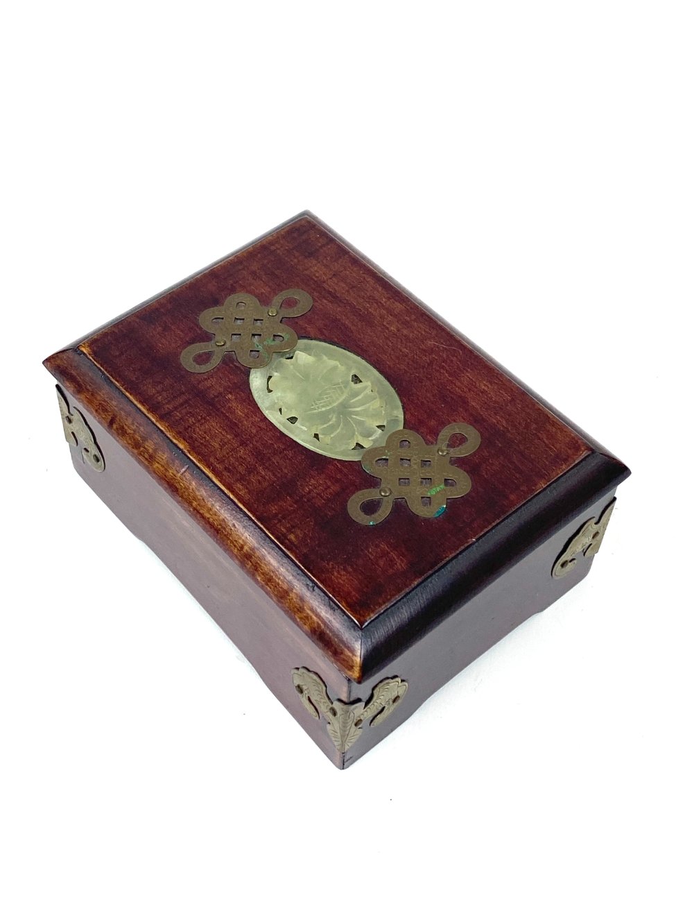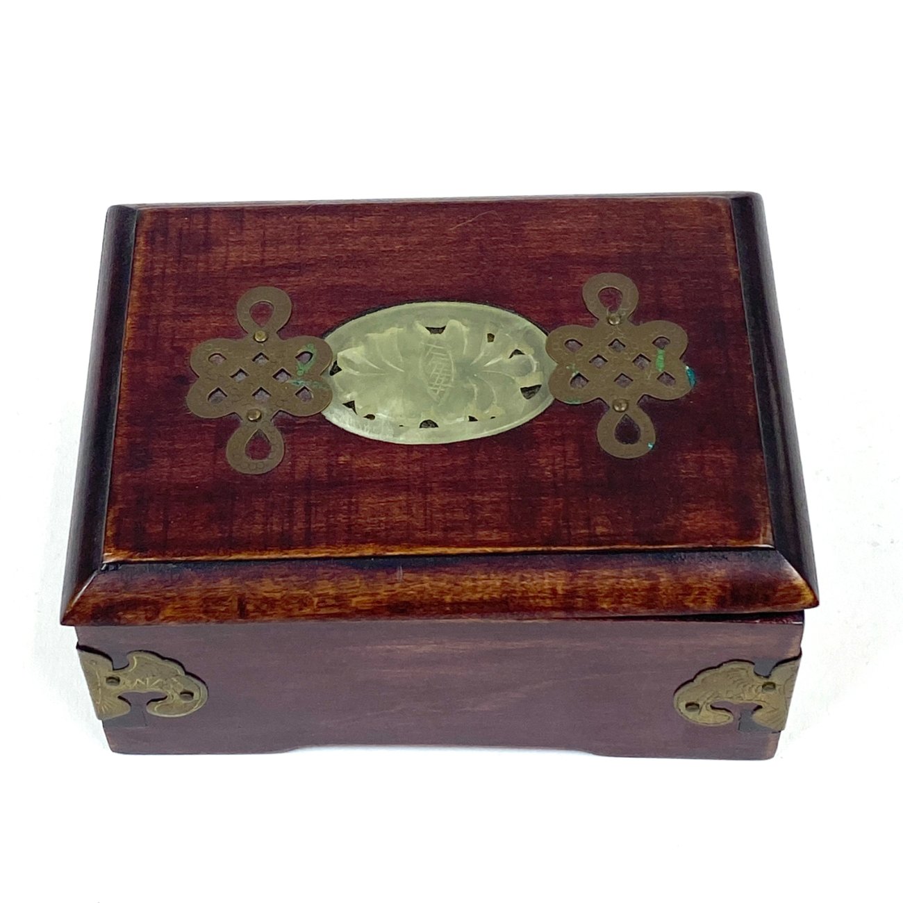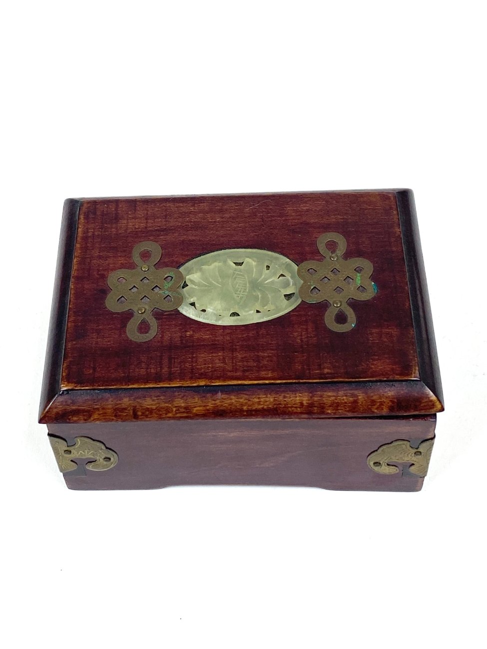 Kiniška medinė dėžutė su žalvario ir akmens dekoracijomis 9x12x5,5 cm