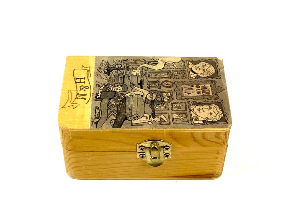 Medinė dėžutė, dekupuota filmo “Harold and Maude” motyvais 10x7x5 cm